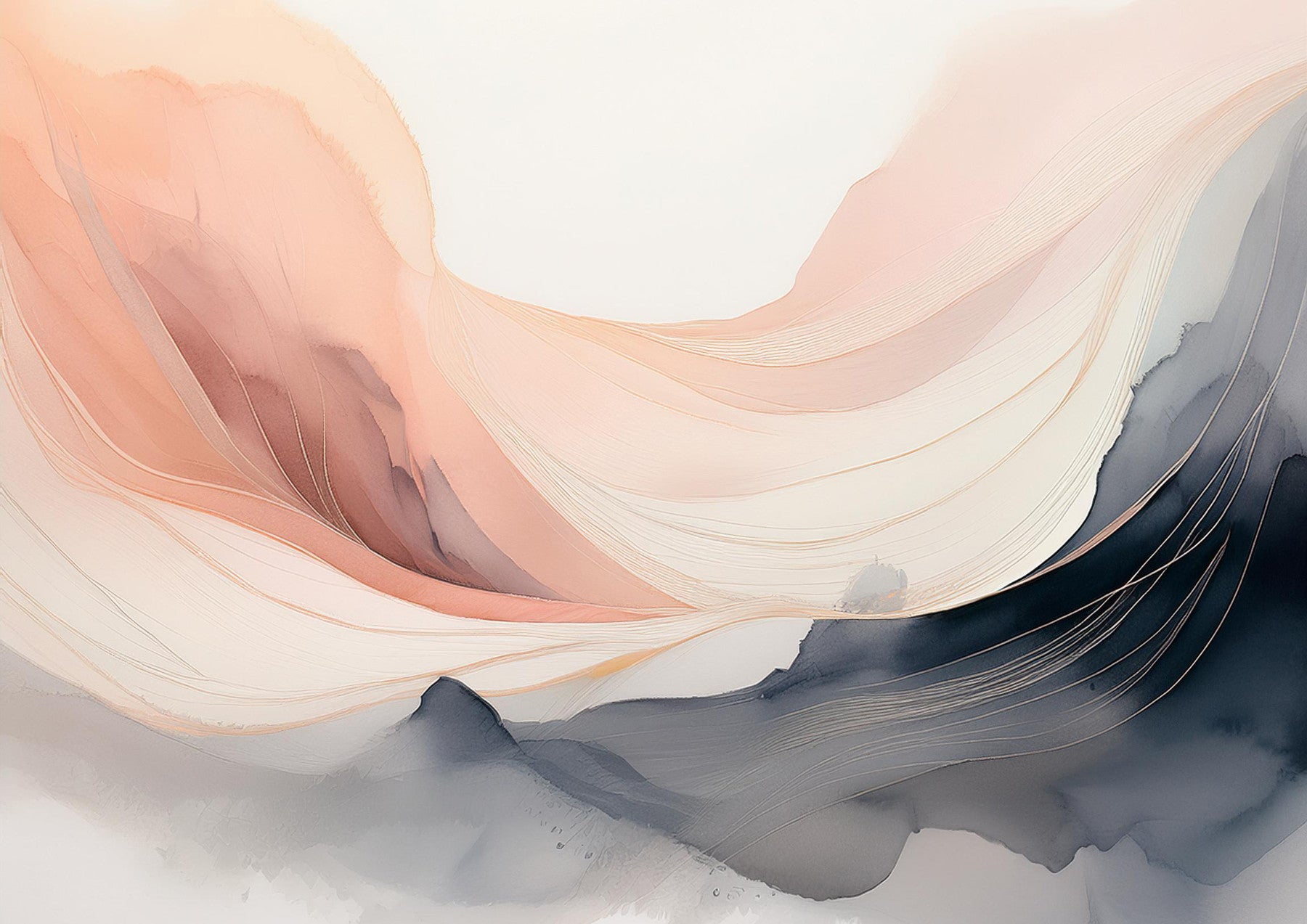 Immerse yourself in the tranquil beauty of "Ethereal Hues." This abstract wallpaper captures a serene landscape of flowing, pastel hues, where soft peach and rose shades gently blend into calming grays and charcoal. Delicate, ethereal lines dance across the image, adding a touch of elegance and sophistication. The fluid forms evoke a sense of dreamlike serenity, creating a peaceful and calming atmosphere perfect for any digital device. The interplay of light and shadow enhances the ethereal quality, making it an ideal choice for those seeking a visually stunning and emotionally resonant backdrop.