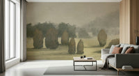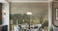 Transform any room with this atmospheric valley scene. The image presents a collection of shrouded trees, giving a sense of depth and quiet. The subdued palette of browns, greys, and beige promotes relaxation. Applying this wallpaper for walls in a home office, study, or bedroom will enhance the space with a subtle elegance. Its unique composition works well with minimalist and rustic decor styles to complement interiors.
