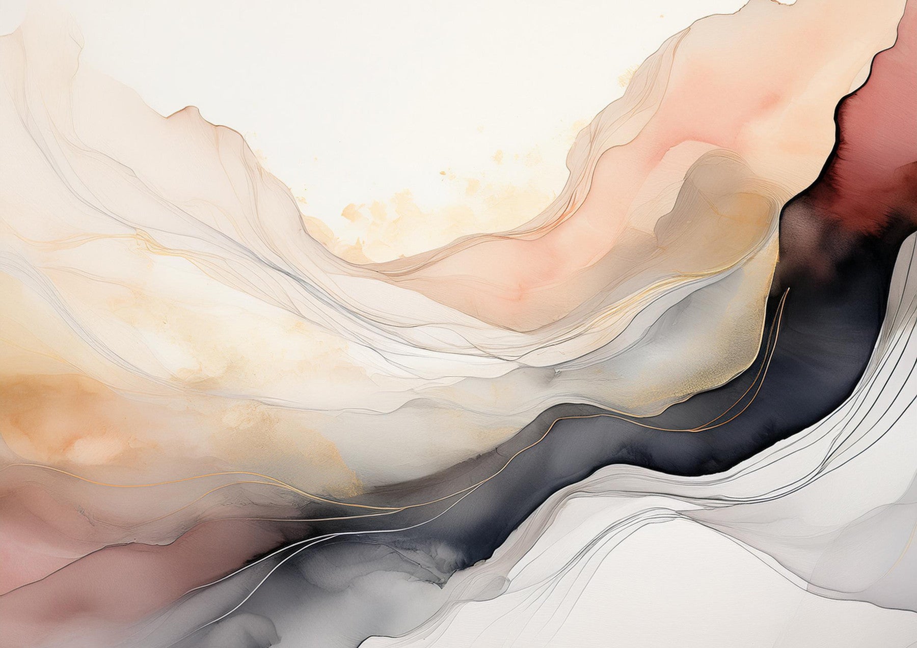 Experience the serene beauty of "Ethereal Veil," a captivating abstract wallpaper. Swirling clouds of blush pink, soft grey, and warm beige create a dreamy landscape, reminiscent of a celestial dawn. Delicate, flowing lines in charcoal grey and gold accentuate the ethereal quality of the design, adding depth and intrigue. The subtle interplay of light and shadow evokes a sense of calm and wonder, transforming your screen into a tranquil haven. This wallpaper is perfect for those seeking a minimalist yet visually rich backdrop for their digital devices, infusing an air of sophistication and tranquility into their daily life.