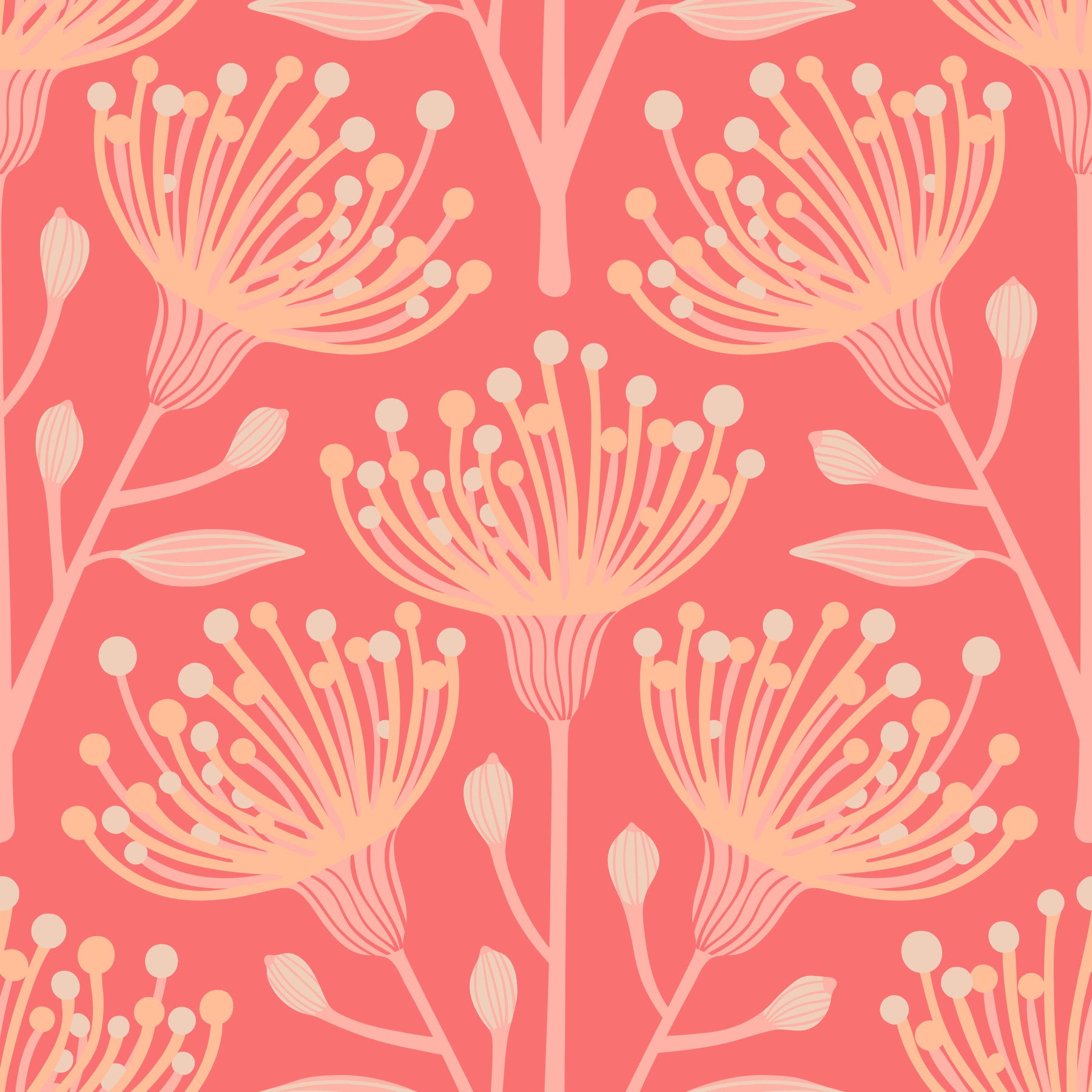 Immerse yourself in the captivating allure of our 'Eucalyptus' Floral Botanical Wallpaper in Bright Peach Fuzz Orange. This design showcases a harmonious blend of botanical elegance and modern artistry, featuring stylised eucalyptus flowers in a delightful palette of Peach Fuzz Orange and Apricot on a bright Orange background. The repeating pattern creates a visually soothing and subtly vibrant atmosphere, perfect for adding a touch of warmth and sophistication to any space. The clean lines and simplified forms of the floral motifs lend a contemporary feel, while the gentle colour scheme evokes a sense of calm and serenity. This wallpaper is an ideal choice for those seeking to create a stylish and inviting environment that celebrates the beauty of nature with a modern twist. This pattern design is also available in Other Colourways too! Original wallpaper pattern design by Jackie Tahara of UnBlink Studio.