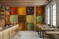 Varieties of spices in a wooden box. Immerse your space in the vibrant world of our "Exotic Spice Collection." This stunning wall décor piece showcases a curated assortment of nature's most aromatic treasures. Each spice, from the fiery reds of chili powders to the golden hues of turmeric and the deep browns of star anise, is meticulously arranged in a rustic wooden frame, evoking a sense of old-world charm and global culinary adventures. The collection features a diverse palette of textures and tones, from the coarse grains of peppercorns to the delicate flakes of dried herbs, creating a captivating visual experience. Elevate your décor with this exquisite still life, perfect for adding a touch of warmth, richness, and worldly sophistication to any space. Bring the flavors and fragrances of faraway lands into your home, and let the "Exotic Spice Collection" inspire your culinary creativity and ignite your senses.