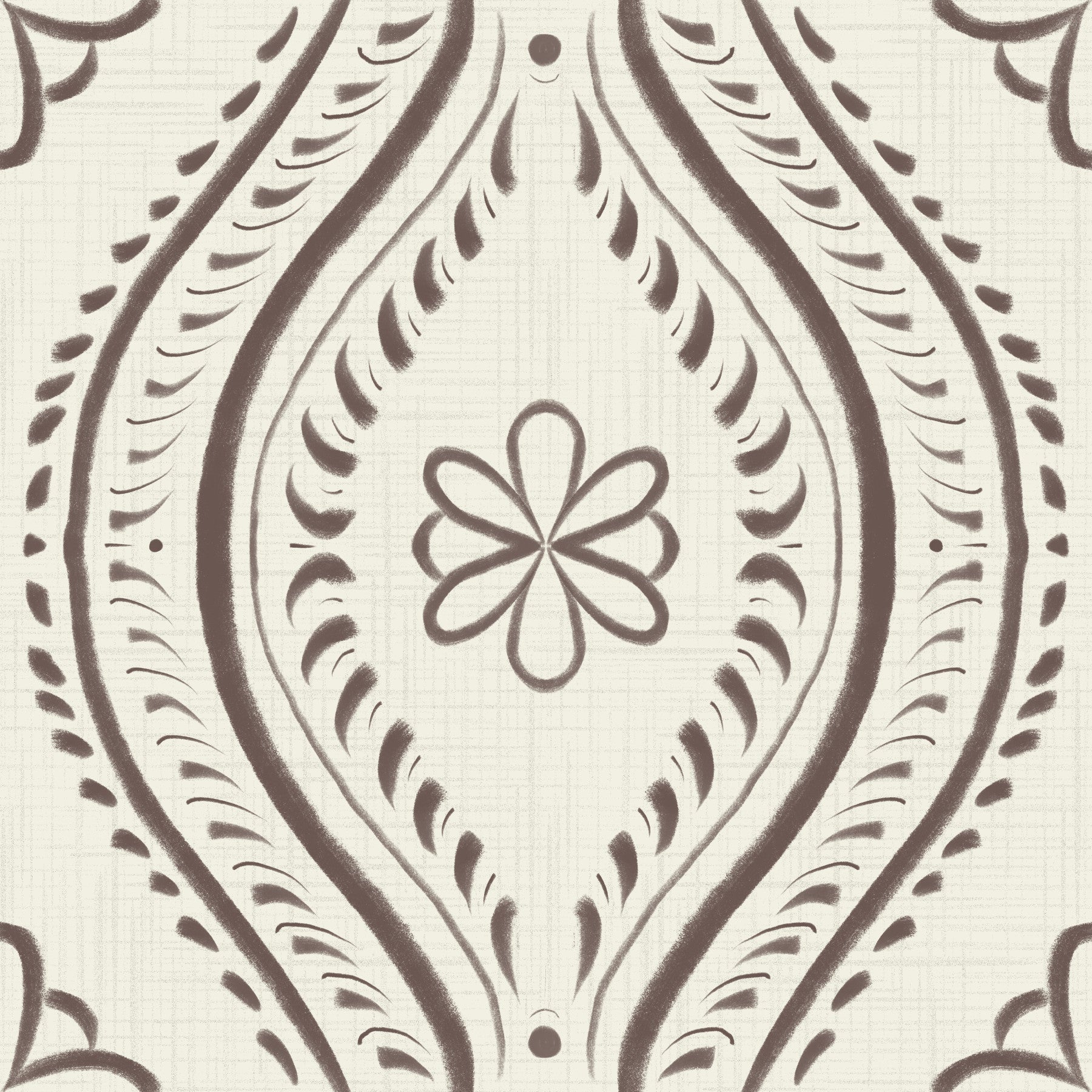 Faded Ogee Damask - Bright - Coffee Quartz Wallpaper⁠