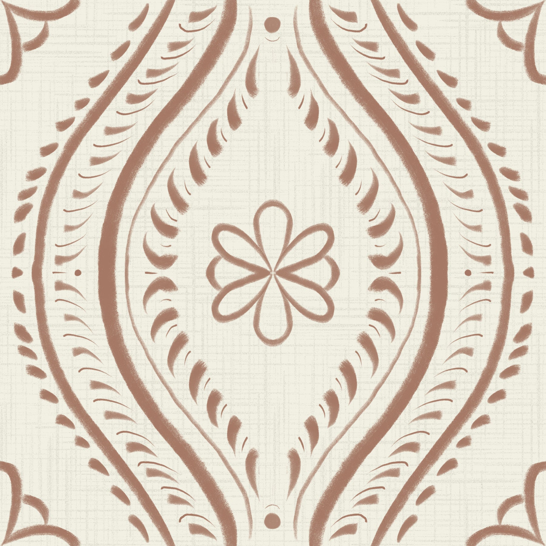 Faded Ogee Damask - Bright - Mocha Mousse Wallpaper⁠