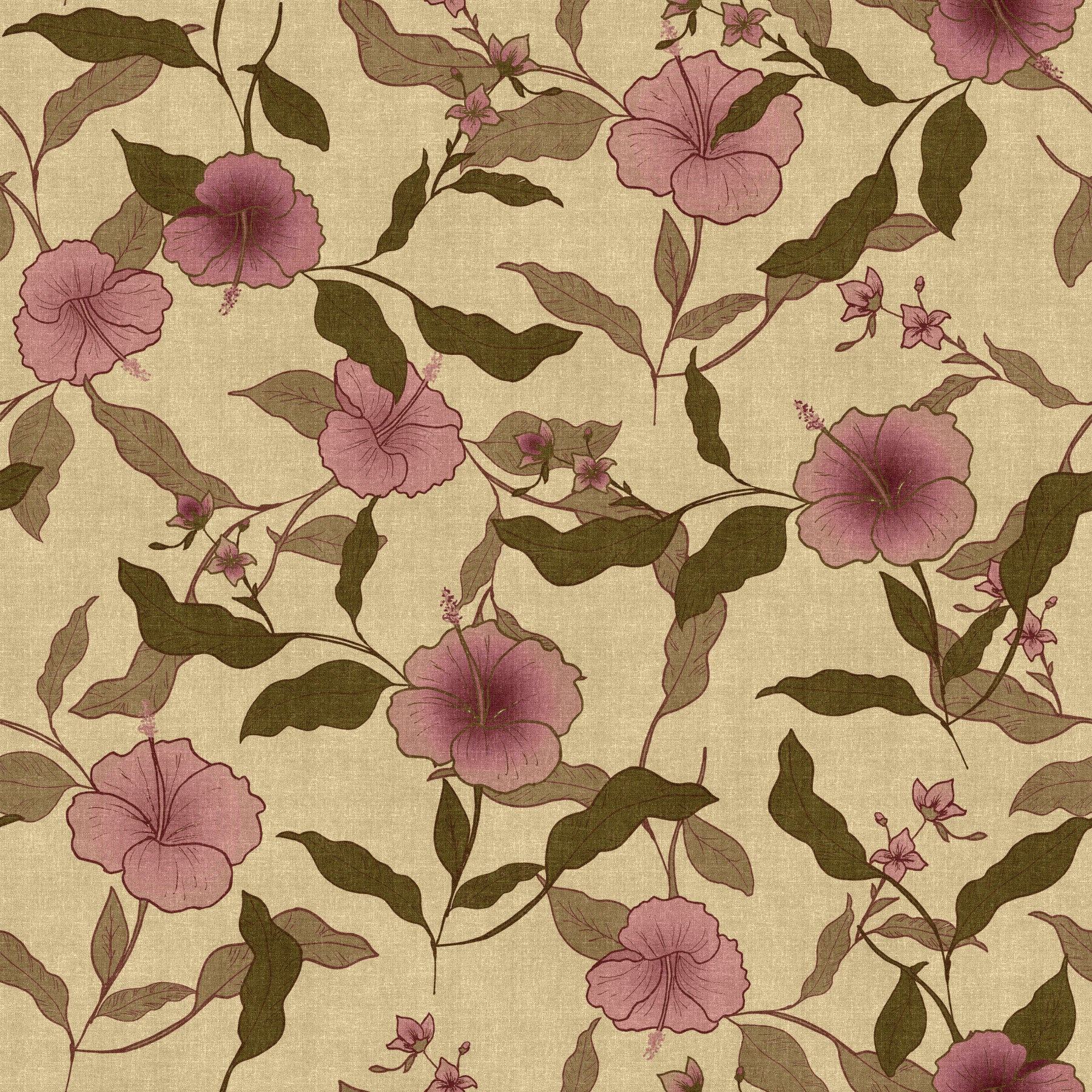 Evoke a sense of timeless beauty with our 'Faded Tropical Floral Heritage' wallpaper. This design presents a captivating blend of vintage charm and exotic allure, featuring meticulously illustrated hibiscus blossoms and lush foliage in muted, antique-inspired tones. The gentle, aged effect creates an atmosphere of serene nostalgia, reminiscent of treasured heirlooms and forgotten stories. The subtle linen-textured backdrop enhances the vintage feel, adding depth and tactile richness to your walls. Perfect for creating a soothing and sophisticated ambiance, this wallpaper brings a touch of faded grandeur and tropical elegance to any space. Transform your home into a tranquil sanctuary where classic design meets botanical artistry with this unique and enchanting floral print.