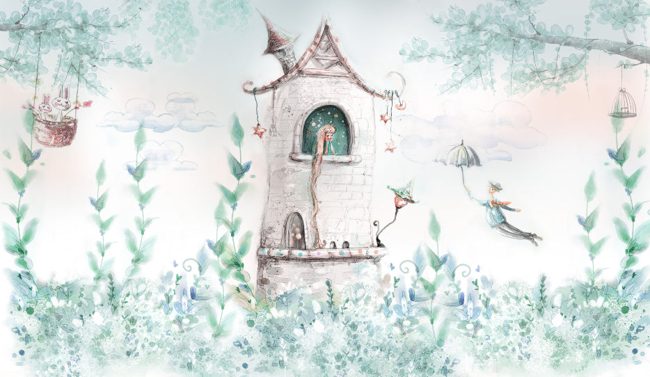 Enchant your little one's room with the fairy tale princess mural, a perfect addition for any girl's space. This girls' room wallpaper mural captures the essence of a magical kingdom with its lush green wallpaper, featuring whimsical forest and tree designs. Each detail of this forest and tree wallpaper mural is crafted to spark the imagination, creating a world where fairy tales come to life. Ideal for inspiring stories and dreams, this mural creates a playful yet serene backdrop for playtime, study, or rest. Let your child's room be a canvas for fantasy and wonder with this captivating princess-themed mural.