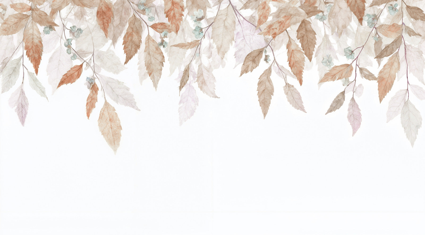 This wallpaper features a delicate design of falling leaves in warm beige, brown, and hints of teal. The watercolour style provides a soft, dreamy ambiance. Install this wallpaper for walls in bedrooms, living rooms, or hallways to establish a calm environment. The pattern complements minimalist interiors and brings a touch of nature indoors, enhancing the space with its understated charm and tranquil aesthetic. It easily blends with a range of décor styles, from modern to rustic.