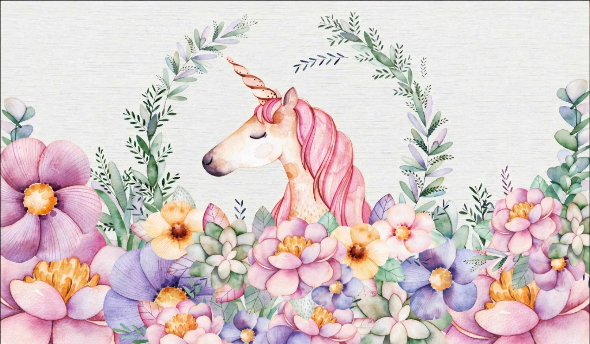 Whimsical Flora and Unicorn Wallpaper