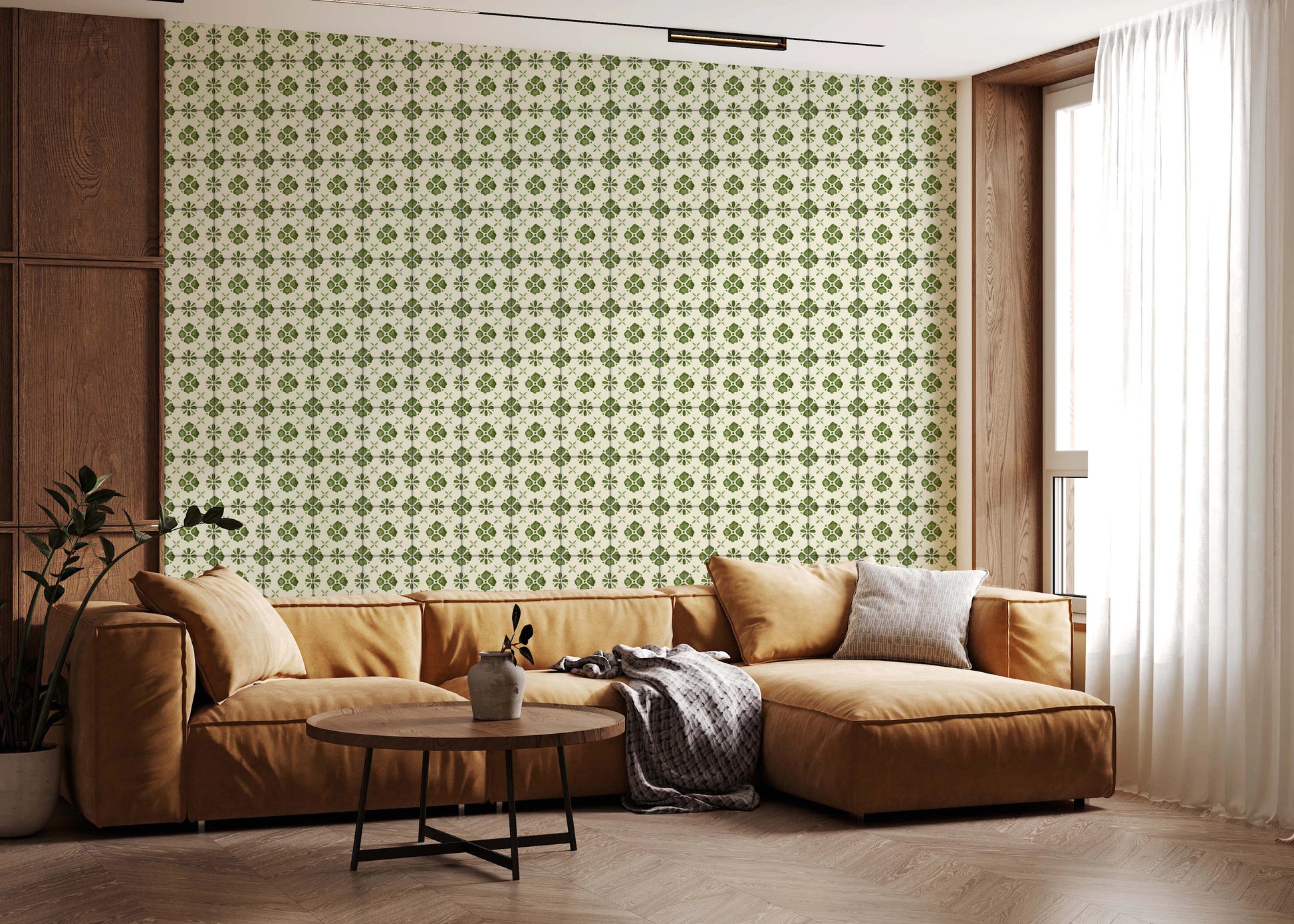 Evoke a sense of timeless charm with the Farmhouse Classic Backsplash Olive wall décor. This design showcases a delightful pattern of stylised floral motifs in a refreshing olive green hue, set against a creamy, neutral background. Inspired by traditional farmhouse aesthetics and classic tilework, this piece brings a touch of rustic elegance to any room. The pattern offers a blend of botanical symmetry and vintage appeal, creating a warm and inviting atmosphere. Imagine adorning your kitchen, bathroom, or hallway with this piece, where it serves as both a decorative accent and a nod to simpler times. This backsplash brings a sophisticated, yet understated, touch of the countryside into your home. The weathered textures and organic patterns within the olive designs add depth and character to your space, making it a conversation starter while exuding a welcoming and harmonious presence.