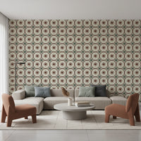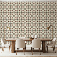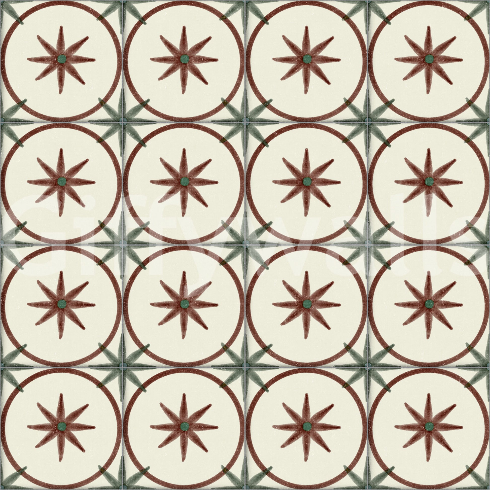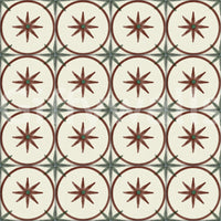 Embrace the charm of yesteryear with this Farmhouse Timeless Backsplash Clay wall décor. Evoking a rustic elegance, the design features a delightful pattern reminiscent of classic hand-painted tiles. Warm, earthy tones of reddish-brown form circles that encase stylised stars, each with a small green centre, set against a creamy, off-white backdrop. The subtle textures emulate the feel of authentic clay, bringing a touch of organic warmth to any space. Intersecting details in muted green add a complementary accent, enhancing the design's vintage appeal. This pattern provides a beautiful way to introduce a touch of farmhouse cosiness to your kitchen, bathroom, or any room seeking a timeless aesthetic. It evokes a sense of heritage and homely comfort.