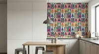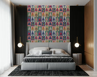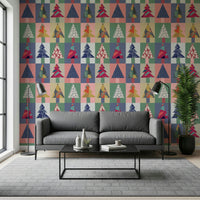 Transform your walls with this vibrant and playful forest-themed wallpaper for walls. Featuring a geometric pattern of stylised trees, each one flaunts unique patterns and textures. The colour palette is a delightful mix of teal, pink, navy, gold, and soft neutrals, creating a modern yet inviting atmosphere. Ideal for living rooms, kids' rooms, or hallways, this design brings a touch of whimsy and sophistication to any space. The bold shapes and varied textures add depth and visual interest, making it a stunning backdrop for your favourite furniture and décor.
