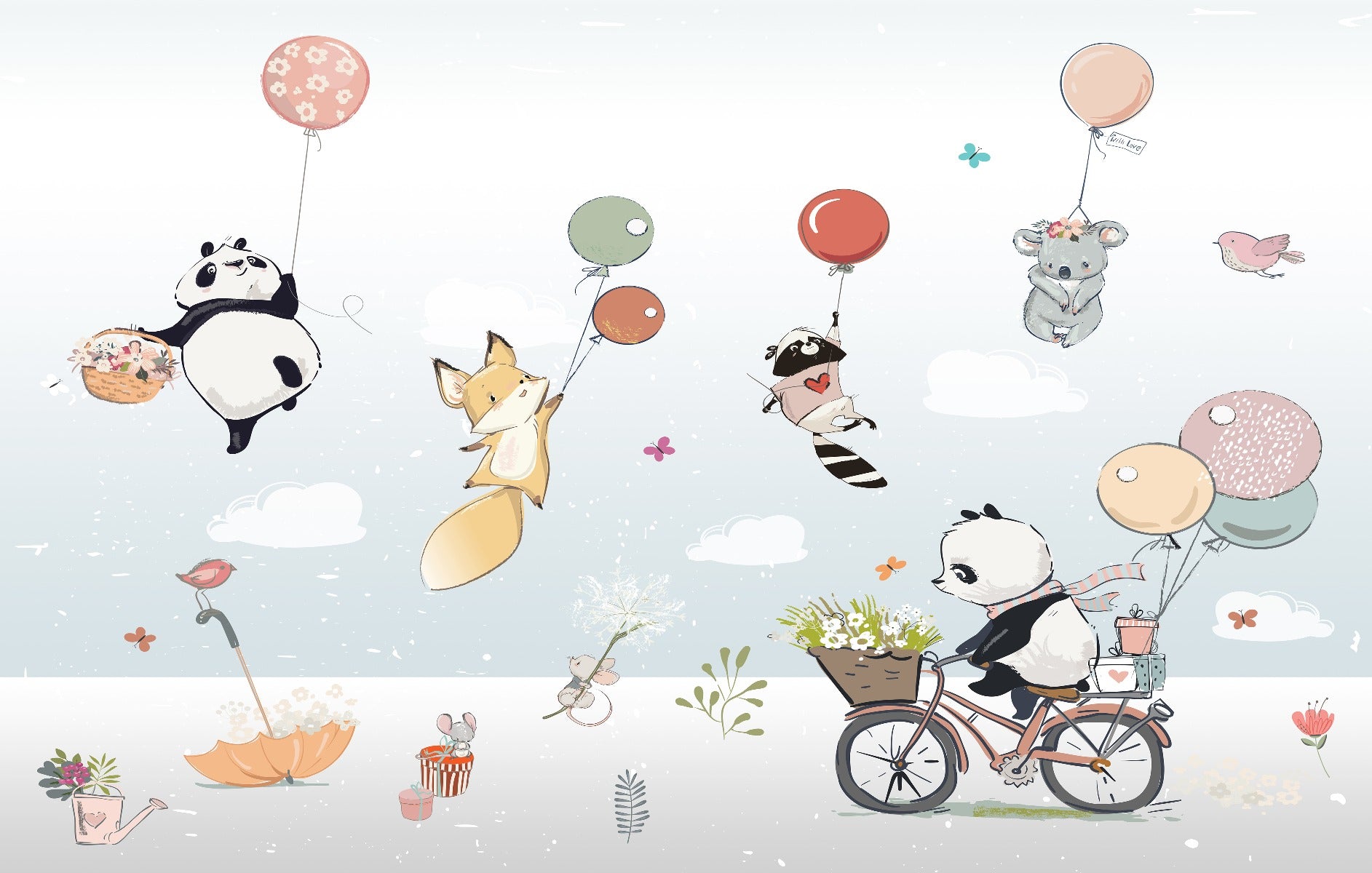 Flying Animals with Balloons in the Air Wallpaper Murals - Giffywalls