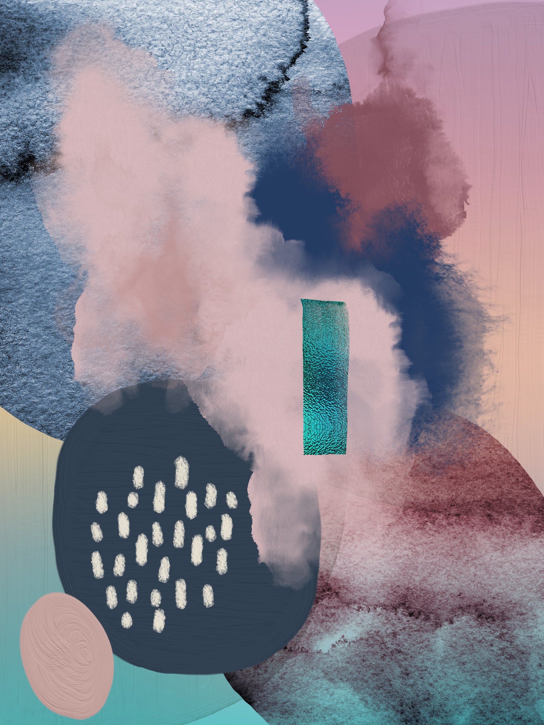 This wallpaper is a modern interpretation of watercolor art, seamlessly blending fluid brushstrokes with sharp geometric forms. The color palette—featuring dusty rose, deep teal, and muted blues—evokes a sense of calm and sophistication. The unexpected metallic accent adds a touch of unexpected glamour, elevating the overall aesthetic. This design is perfect for those seeking a balance between organic and structured elements. Suitable for a range of interiors, from living rooms and bedrooms to home offices that need a touch of modern elegance.