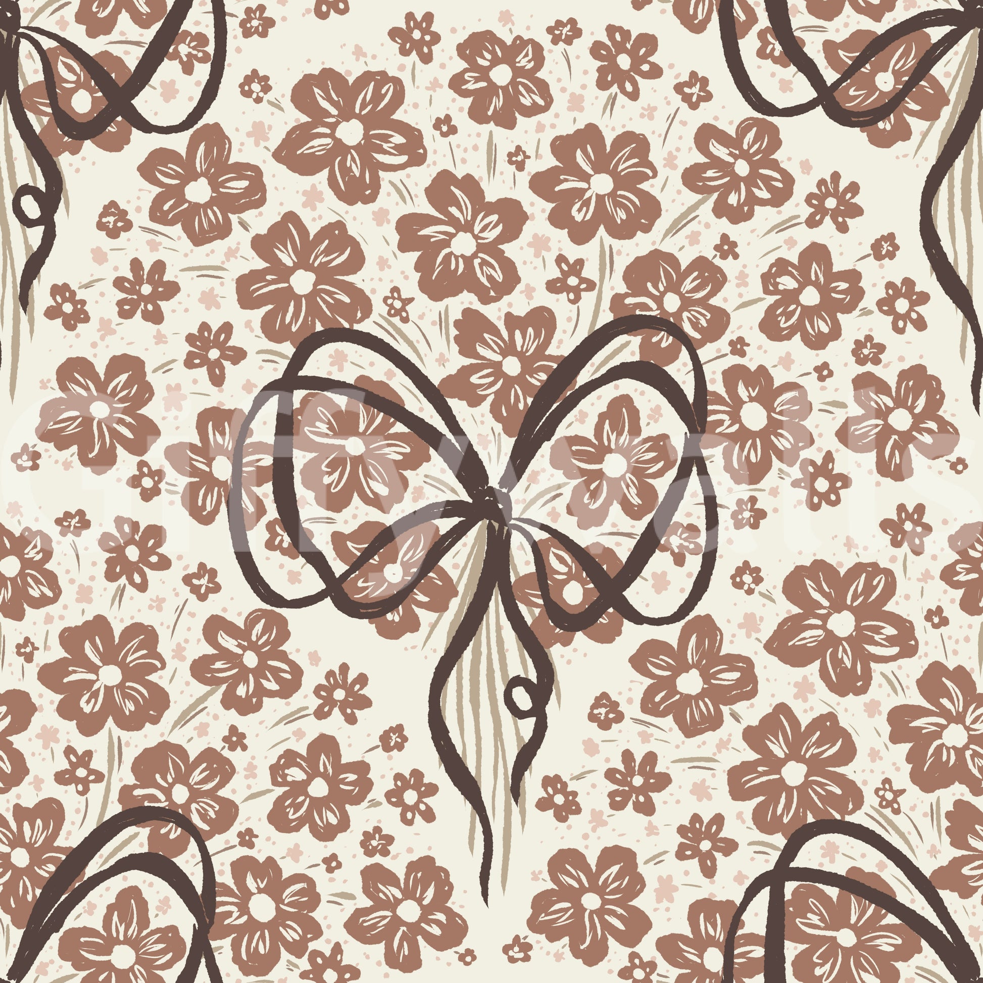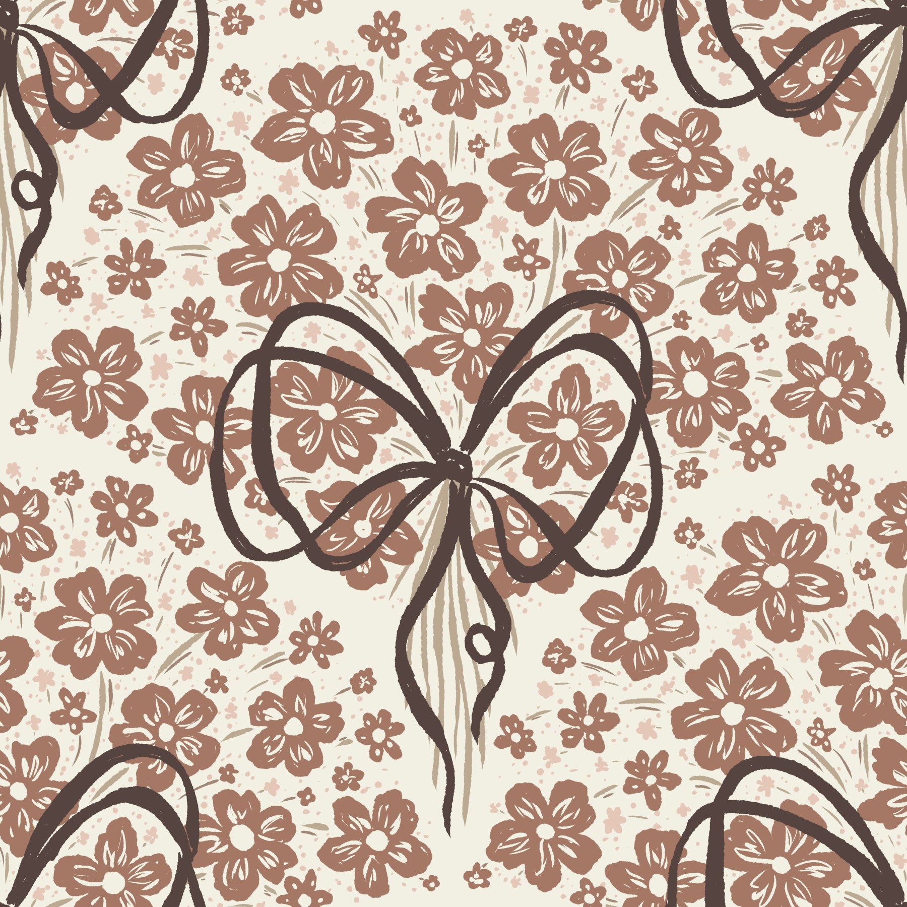 This wallpaper features a captivating blend of hand-drawn floral motifs and abstract bow elements. The earthy color palette of browns, creams, and dusty pinks creates a serene and inviting atmosphere. The slightly textured appearance adds depth and visual interest. Perfect for adding a touch of bohemian charm to any room, from bedrooms and living rooms to hallways and even offices, this wallpaper’s minimalist yet impactful style effortlessly elevates the ambiance. The subtle color variation in the flowers adds texture and visual interest, creating a calming and elegant space. The abstract lines create a unique visual balance, making the design modern and captivating.