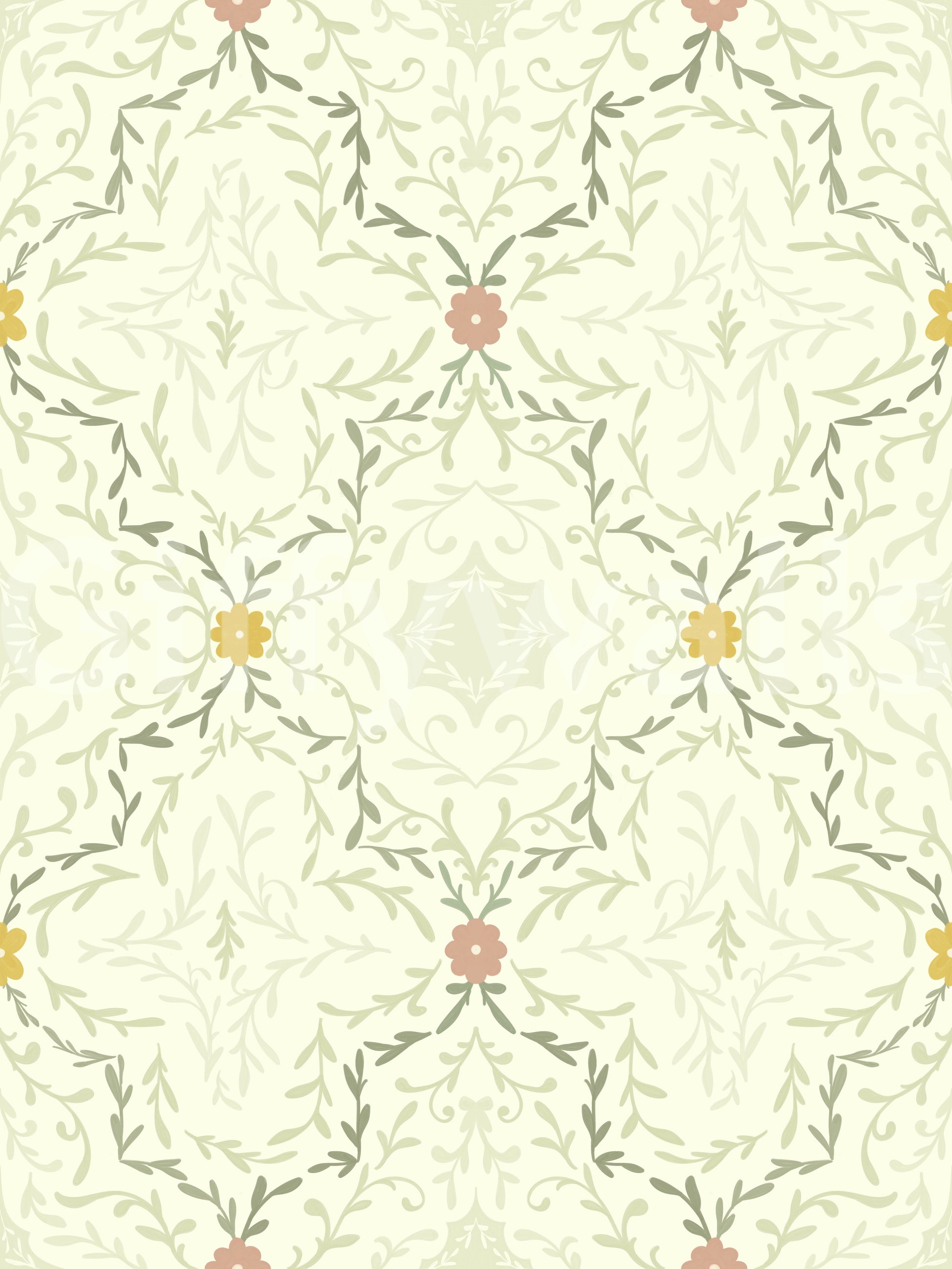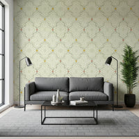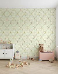 Bring a touch of serene elegance to your home with this floral pattern. The wallpaper for walls features a symmetrical design of delicate branches and blossoms in a palette of soft greens, yellows, and blush pinks against a creamy background. This gentle and harmonious pattern will enhance the atmosphere of bedrooms, living rooms, or hallways. The subtle colour palette creates a calming and inviting space. This design complements both traditional and contemporary interior styles, adding a touch of organic beauty to any room.