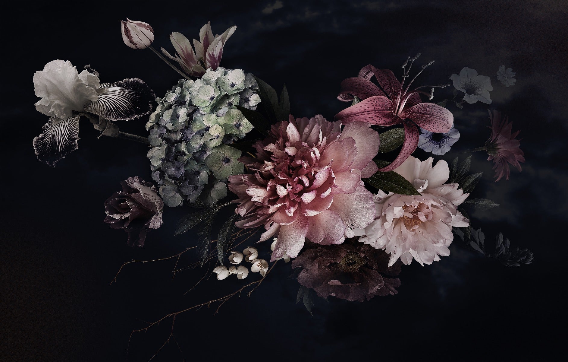 If you're tired of the same old wallpaper options that don't excite your senses, consider a floral display mural wallpaper that can add a unique touch of nature to your walls. Think beyond the typical bright flowers, and go for a darker hue that will set an unexpected and sultry tone. The contrasts of the dark background and the vibrant and intricate flowers will give your room an edgy elegance that will capture anyone's attention. Whether you're looking for a statement piece or just an accent for your room, a floral display mural wallpaper can be a great addition to your space.