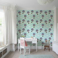 Vibrant floral hot air balloon wallpaper for a fun room decor