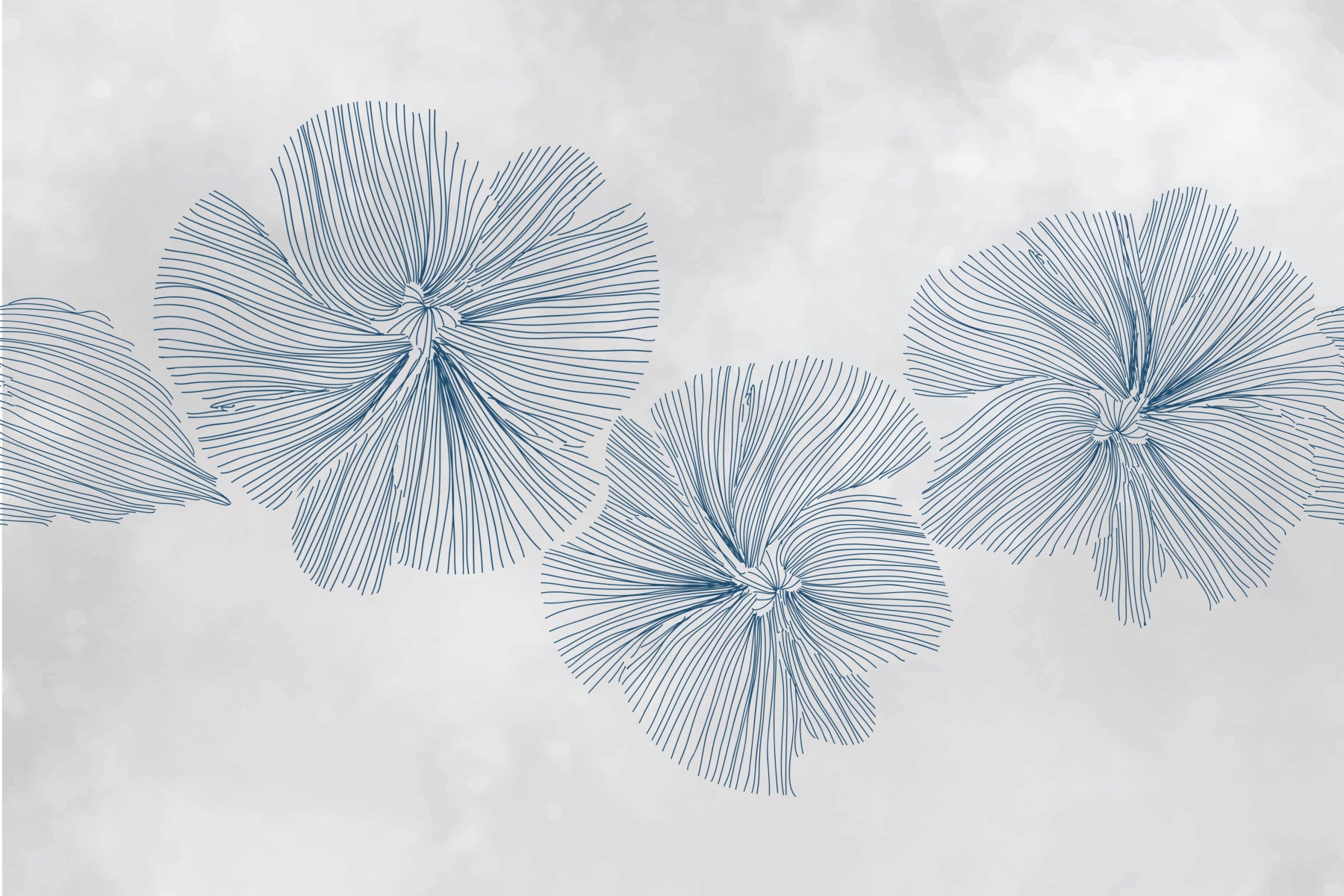 This wallpaper design offers a tranquil floral pattern with blue lines on a soft grey background. The abstract nature of the flowers brings a sophisticated touch to any room. Apply this wallpaper for walls to your living room, bedroom, or hallway to create a serene and inviting atmosphere. The colour palette is neutral enough to blend with most interior styles. The line art provides a modern twist to classic floral themes, creating visual interest without overwhelming your space.