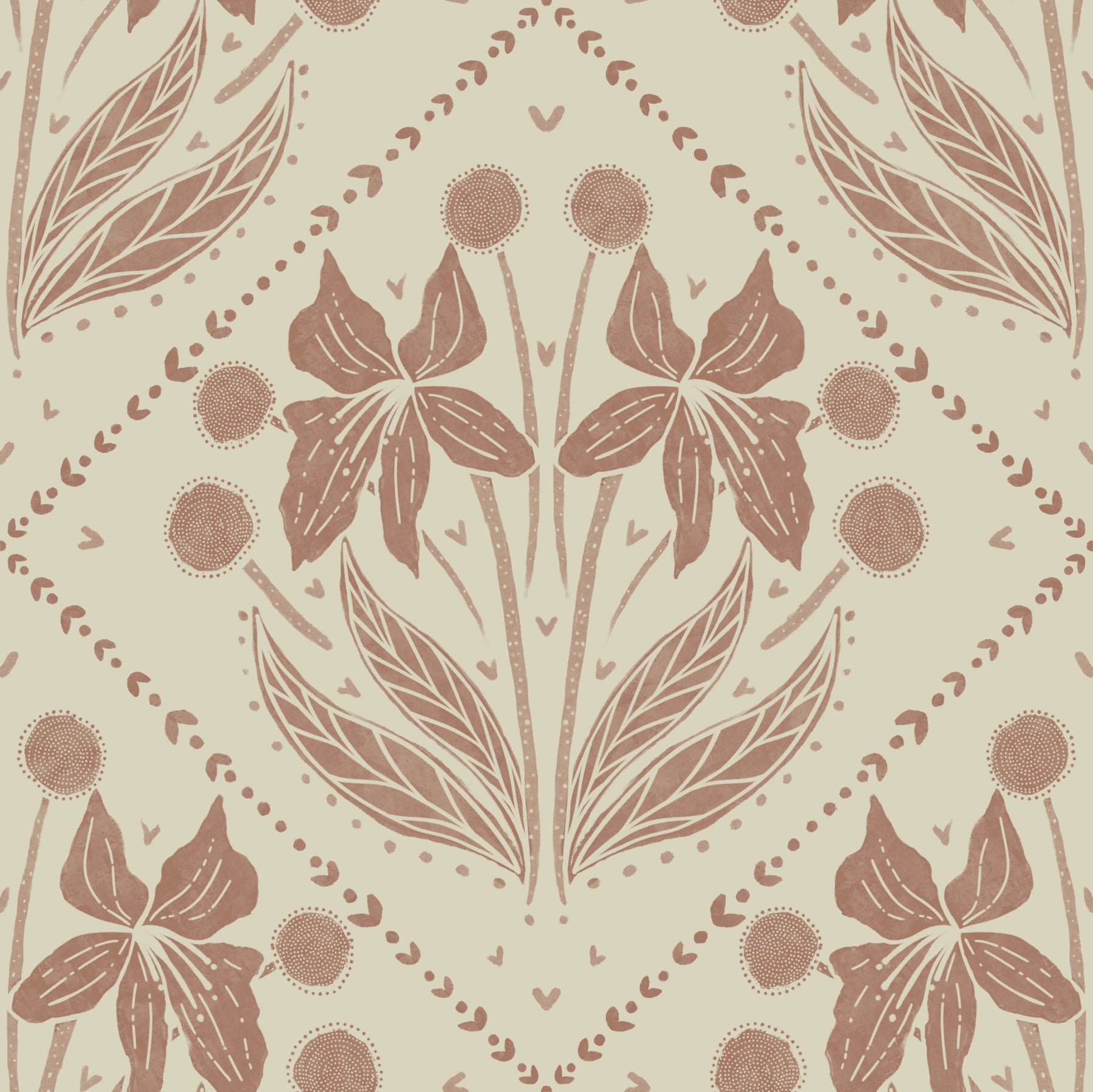 Floral Reverie wallpaper with soft flowers on terracotta base