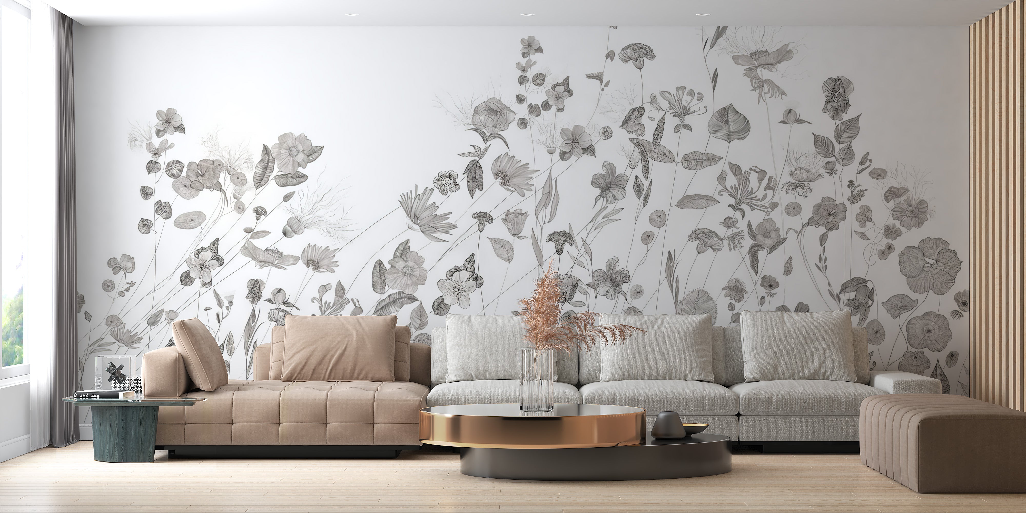 Unveil the delicate charm of our floral sketch wall mural. Each stroke captures the essence of a blossoming garden, bringing a whisper of nature's serenity to your domain. Crafted with precision, this floral wallpaper merges classic sketches with modern aesthetics, offering a timeless mural that complements any setting. Experience a gentle, visual escape through this elegant portrayal of Flora. It's not just a backdrop; it's a journey to a world sketched in nature's own hues.