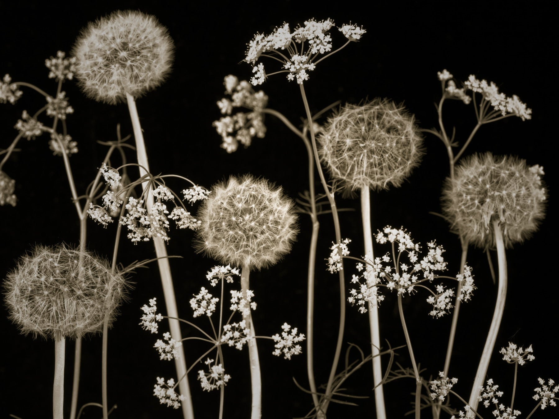 Bring botanical grace to your home with this unique floral wallpaper. The delicate dandelions and tiny blooms create a serene, monochrome scene. It’s the perfect wallpaper for walls to complement interiors in living rooms or bedrooms. The soft tones add warmth to any space, while the dark background creates a dramatic effect. Imagine this enhancing a modern living room or adding a touch of sophistication to a hallway.
