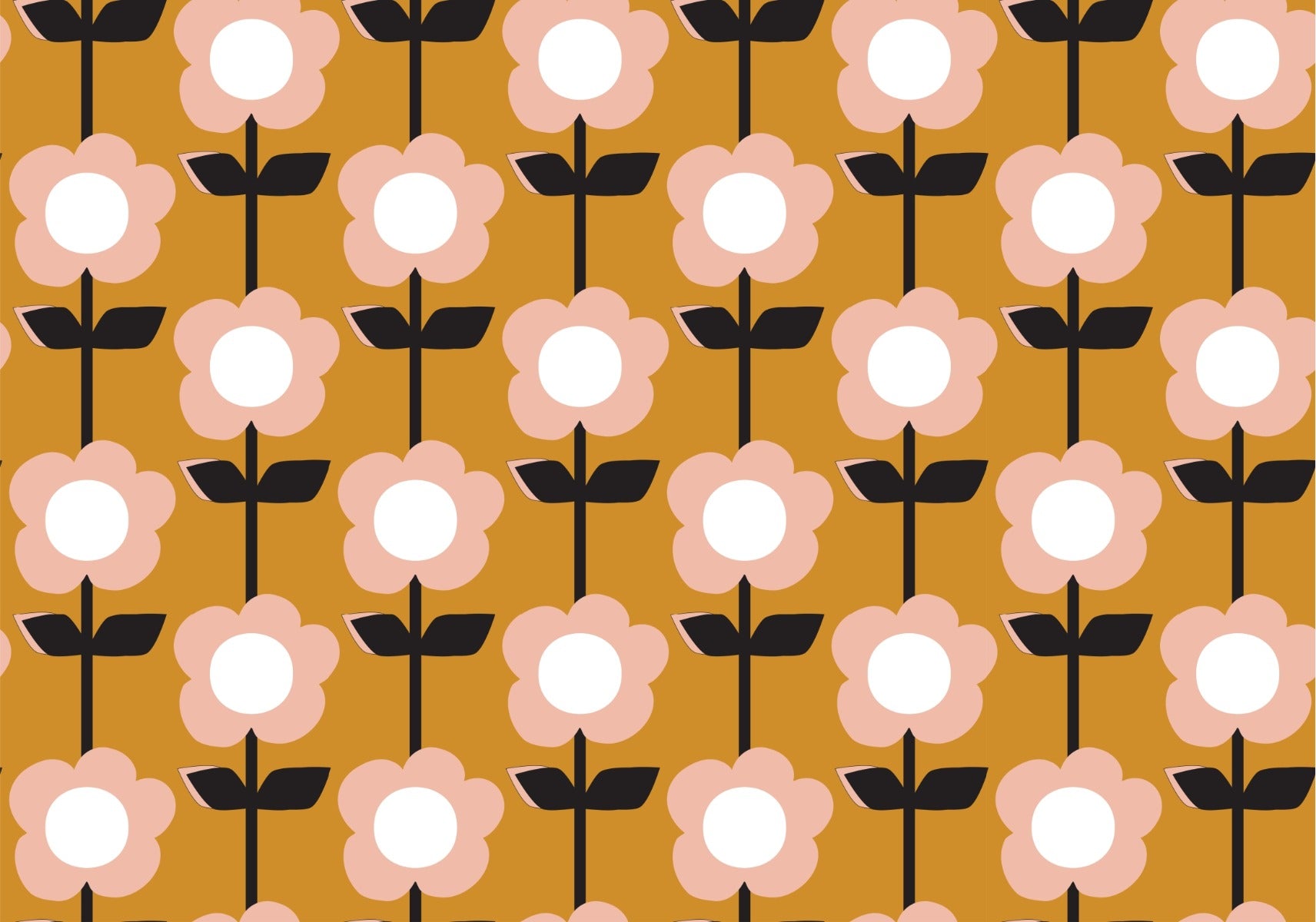 Add charm with Flower Mustard Design Retro Wallpaper