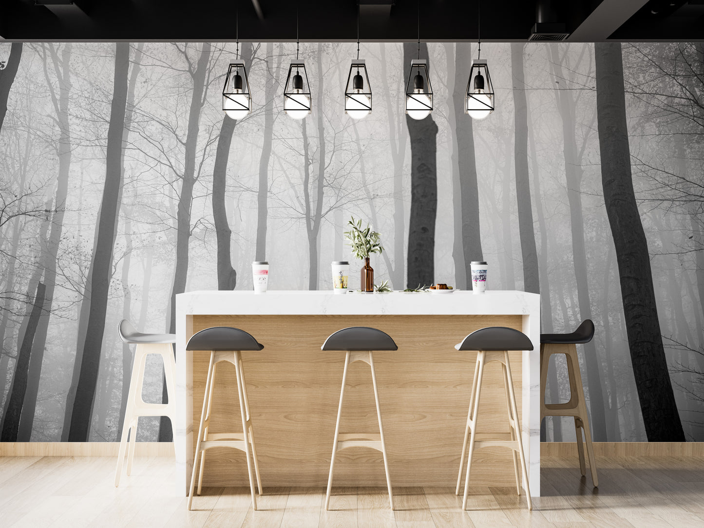 Imagine stepping into your living room and being transported into a mystical jungle. Your walls are adorned with a foggy jungle view mural wallpaper with lush greens and earthy tones. The misty atmosphere creates a mysterious and adventurous ambiance that will leave you feeling rejuvenated after a long day. The beauty of this jungle wallpaper is the intricate details that will leave you mesmerized, as you notice something new every time you glance at it. The perfect blend of nature and modern design adds a touch of creativity and sophistication to your living space. A foggy jungle view mural wallpaper brings the wilderness into your home, creating a sense of energy and inspiration that you'll enjoy for years to come.
