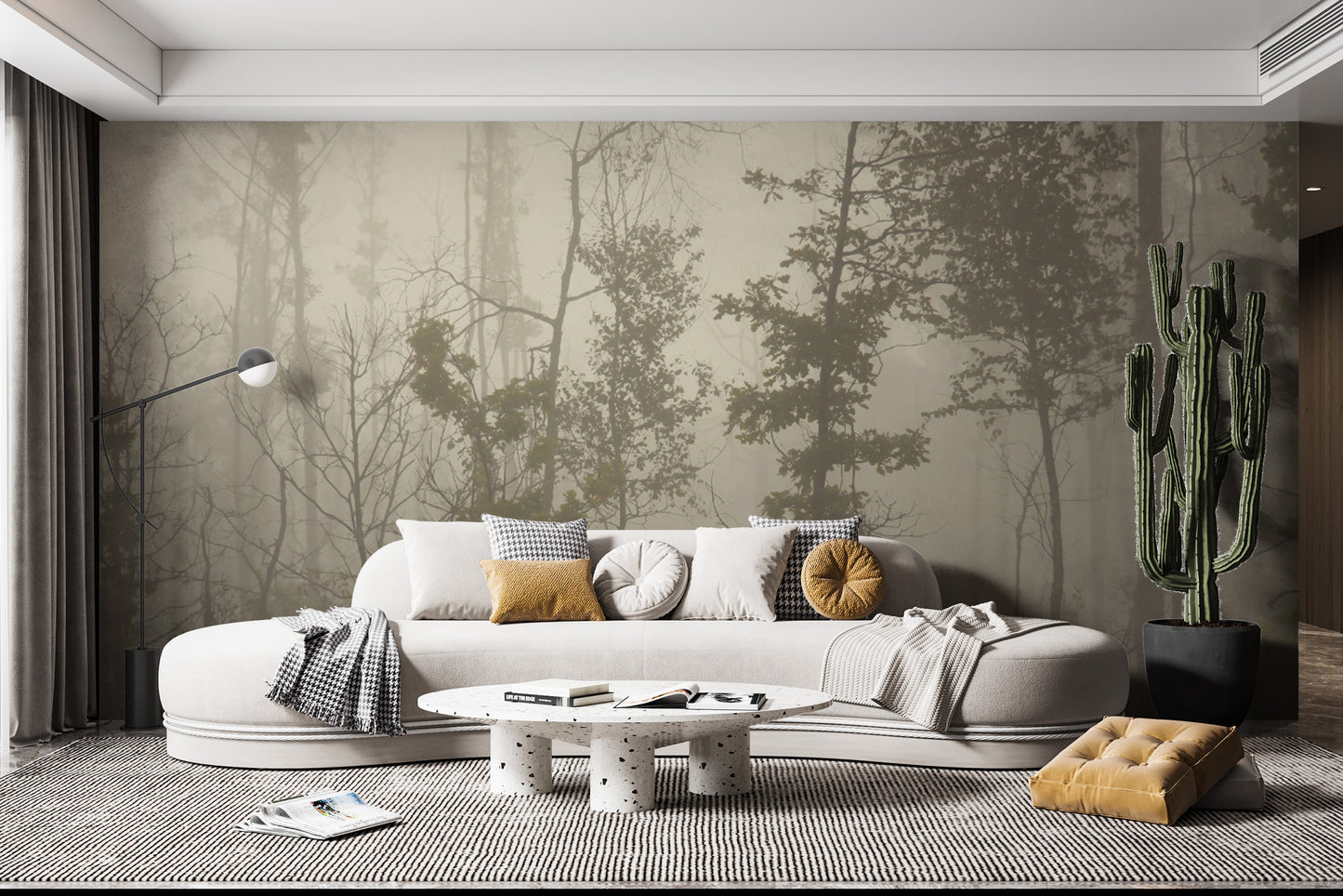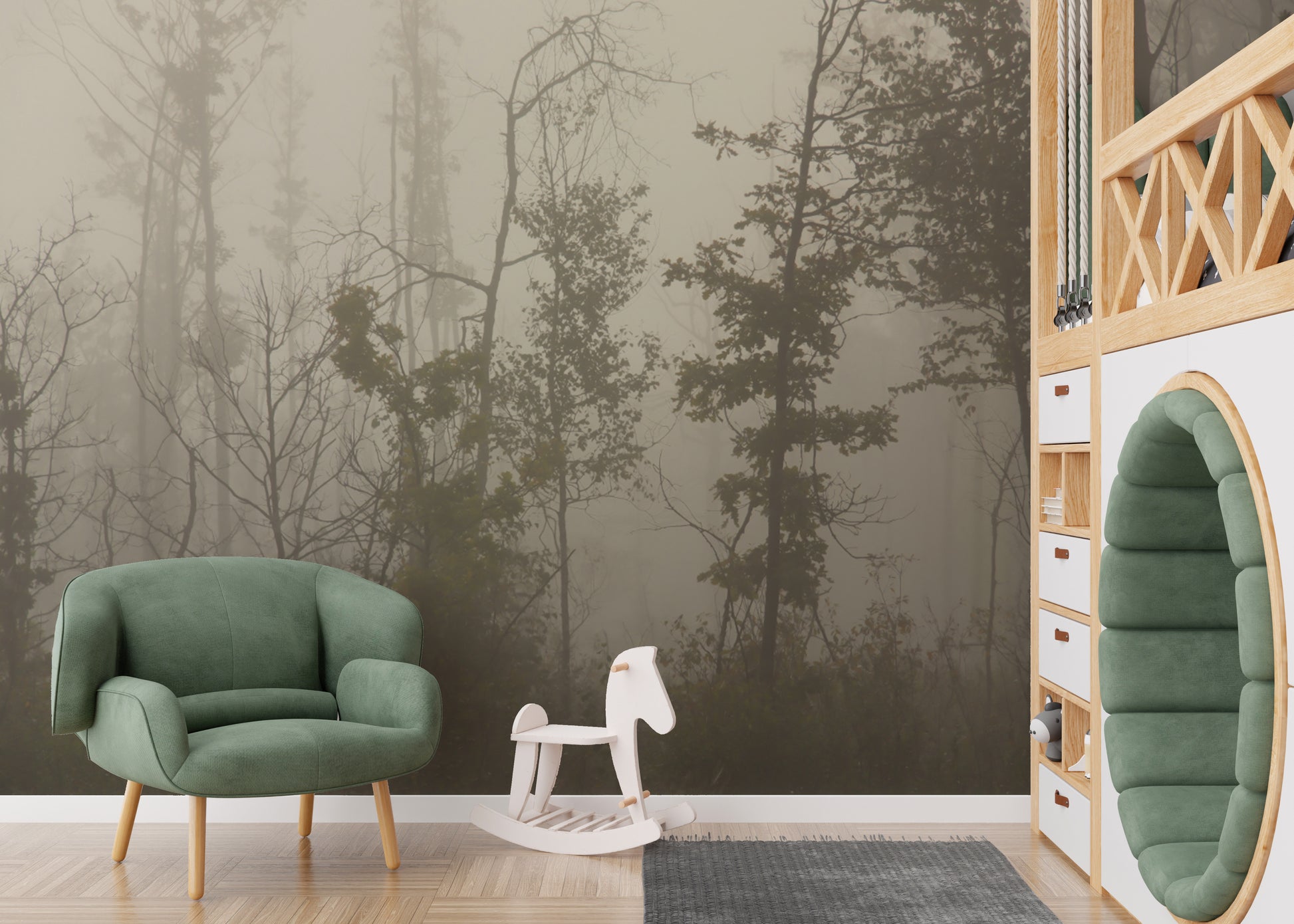 Add a calming, natural feel to your walls with foggy forest nature wallpaper. This design features tall, slender trees wrapped in soft mist, creating a peaceful forest scene. The foggy forest wallpaper blends muted greens and browns, perfect for modern, rustic, or minimalist interiors. The misty woodland wall mural adds depth and texture, while the soft tones offer a soothing backdrop for living rooms, bedrooms, or offices. This nature-inspired forest wallpaper captures the beauty of the outdoors, and the muted forest wall covering brings a subtle yet elegant touch to any space, enhancing its natural charm.
