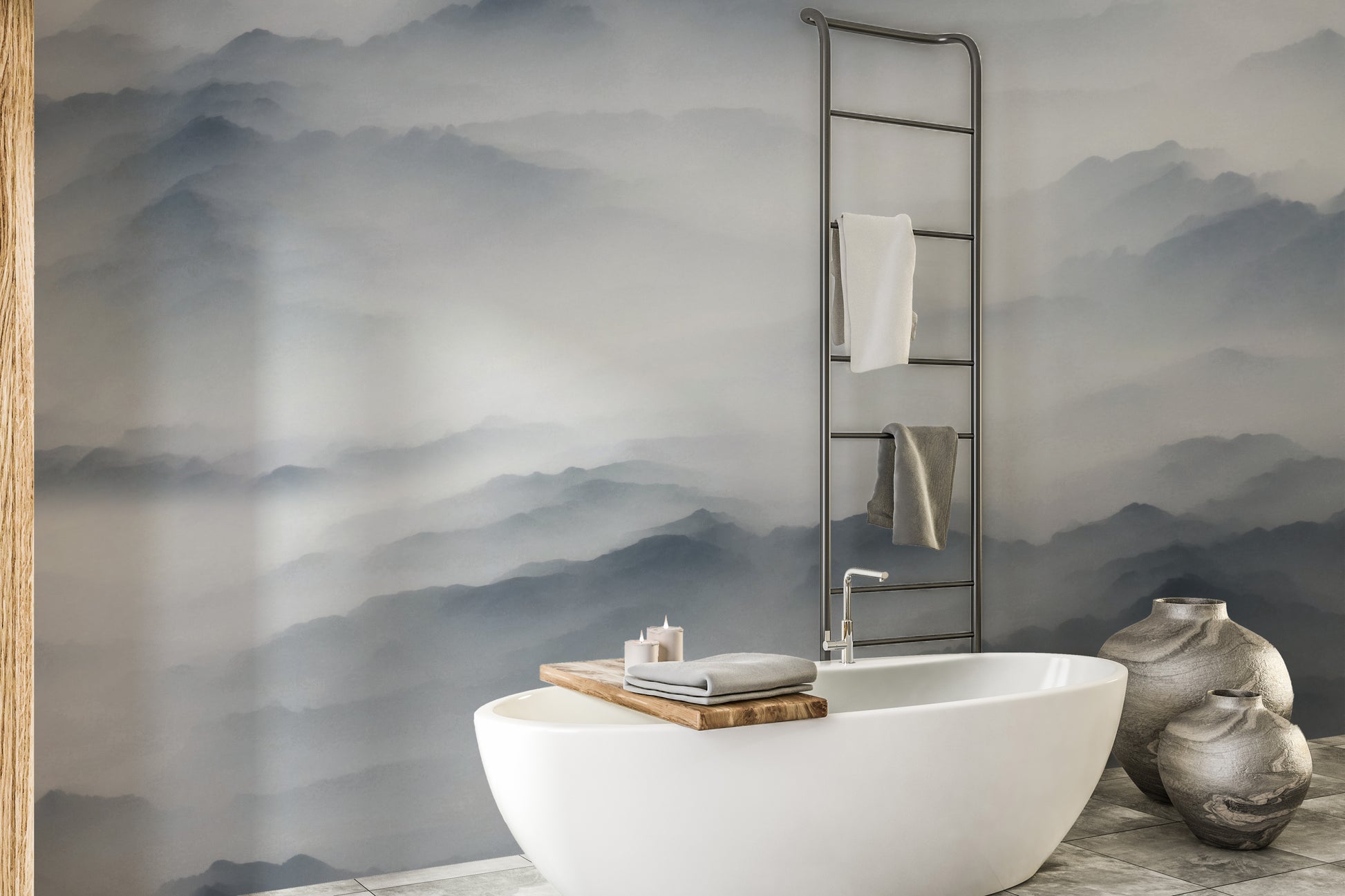 Impress guests with a stunning bathroom featuring majestic foggy horizon mural wallpaper. This bathroom wallpaper breathes life into your bathroom, creating an atmosphere of tranquillity and calmness. The timeless marble design of the wallpaper grounds the entire room, while its soft and subtle hues blend seamlessly with any style or decor you've chosen. Escape to a serene oasis in your home every time you step foot in your elegant, foggy-themed bathroom. This bathroom's warm and inviting atmosphere will impress even the pickiest of guests and leave them feeling relaxed and refreshed.