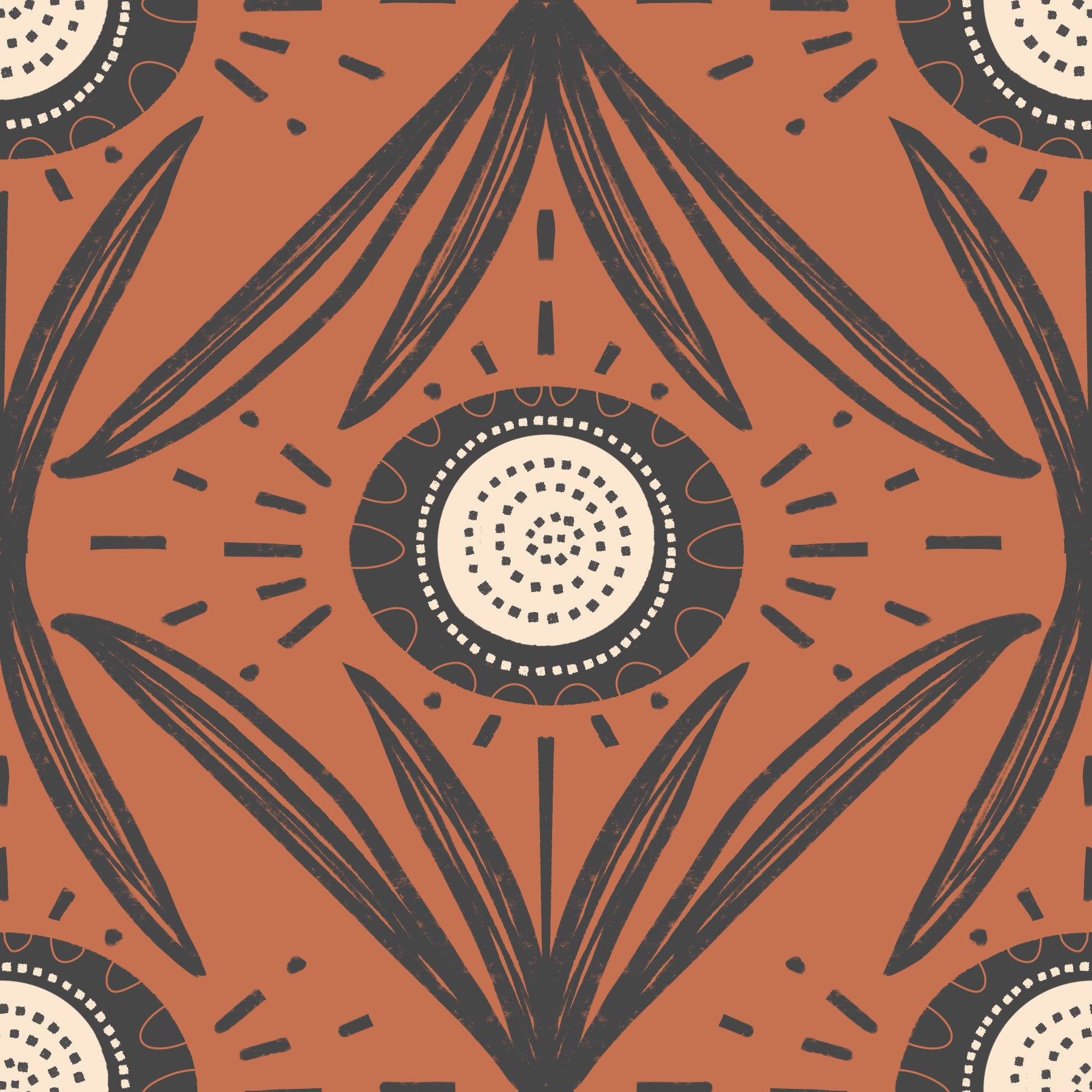 Folk Bloom Radiance Charcoal Terracotta wallpaper design