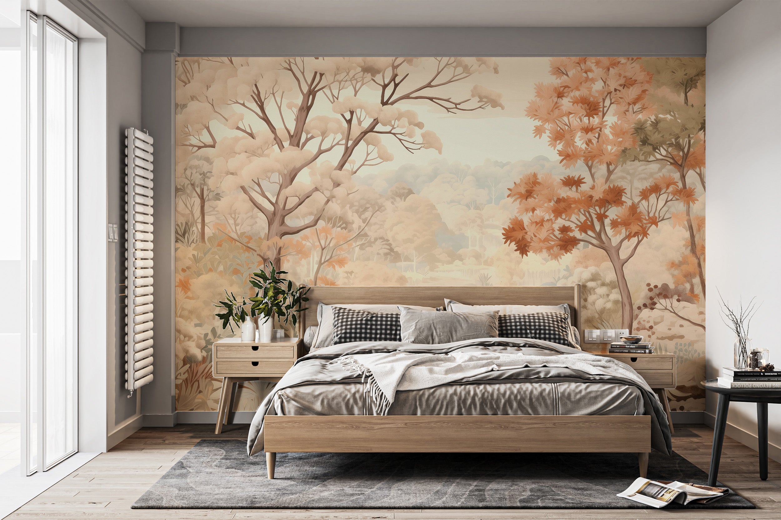 Revitalize your home with our forest autumn watercolor beige wallpaper, an essential for any accent wall. Meticulously crafted, this adhesive wallpaper effortlessly transforms your living space into a haven of style and comfort. Designed to be more than just wall dressing, it merges art with practicality, ensuring a seamless blend with your existing decor.