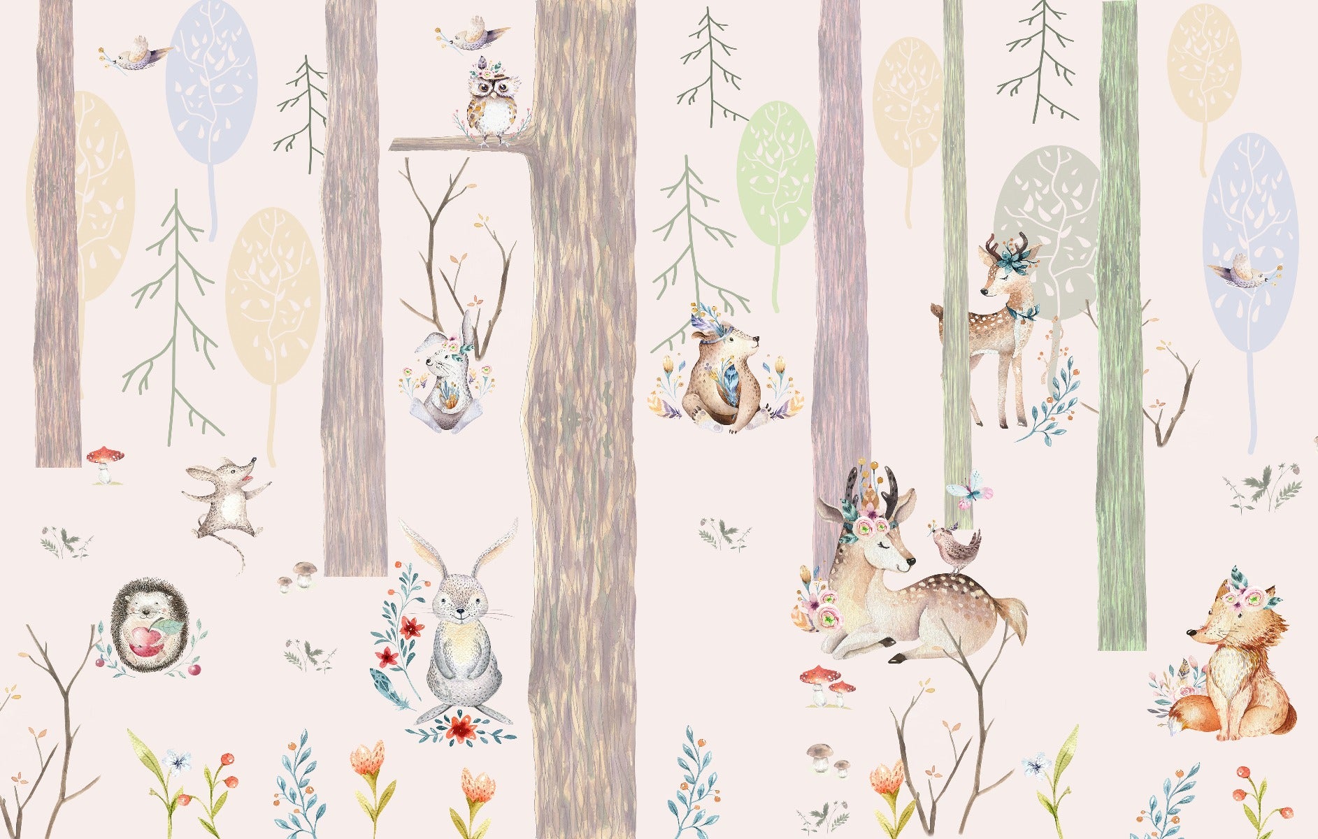 Immerse yourself in a world of wonder with our mystical pink color forest mural wallpaper. Perfect for adding a unique touch to your little one's nursery, this wallpaper will transport you to a magical land of fairies and woodland creatures. The intricate details of the pink-hued trees and foliage create a whimsical atmosphere that will spark your child's imagination and fill their dreams with enchantment. Let this stunning wallpaper be the statement piece for your nursery without sacrificing your style. It's time to make magic happen!