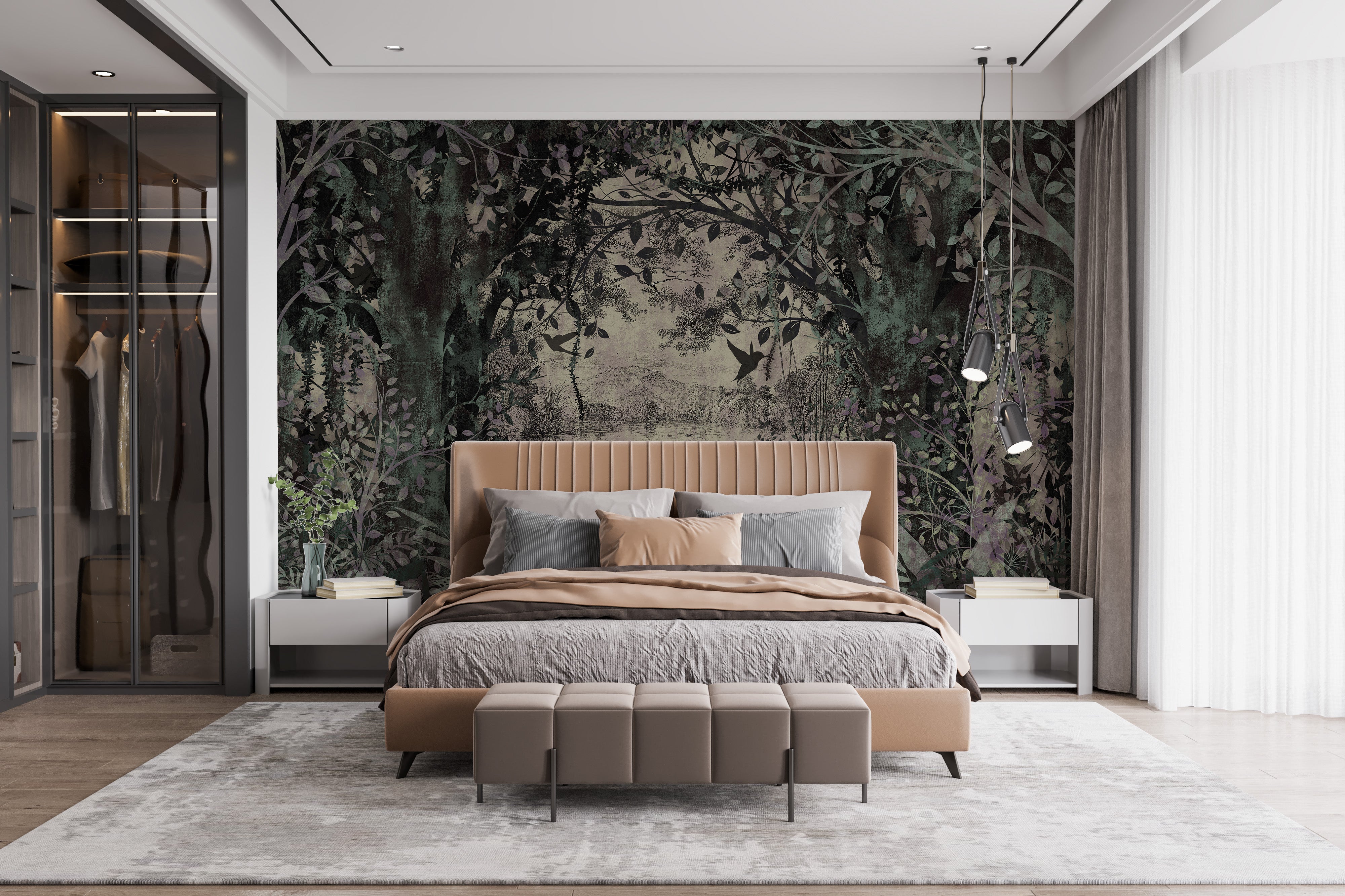 Escape into a dreamy forest with the peel and stick dusky green forest mural wallpaper. The perfect living room wallpaper for those who crave a touch of nature within their homes. The green wallpaper adds a calming ambiance to any room and truly brings the outdoors inside. Envision yourself amidst the rustling leaves and chirping birds as you relax on your couch. The intricate details within the forest mural create an immersive experience, making it seem like you're in the heart of nature itself. Make a statement with this unique wallpaper and add a touch of creativity to your space.