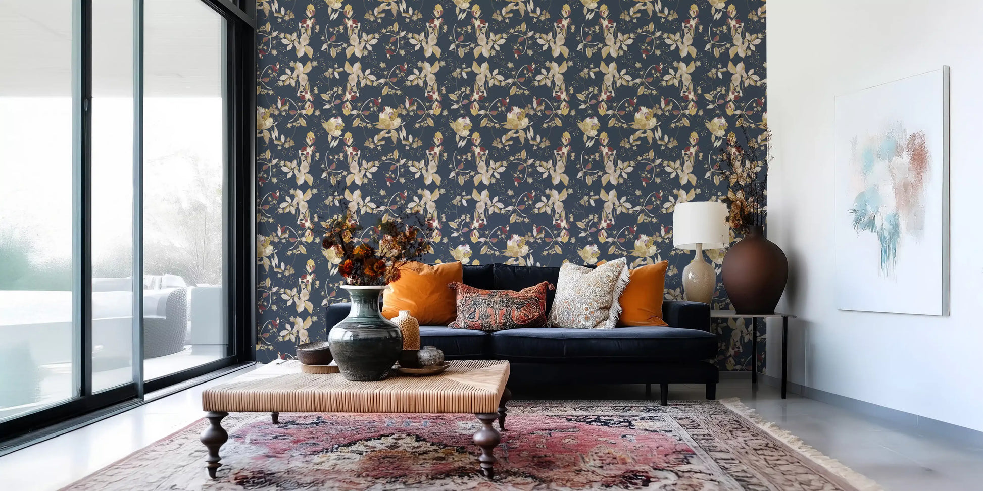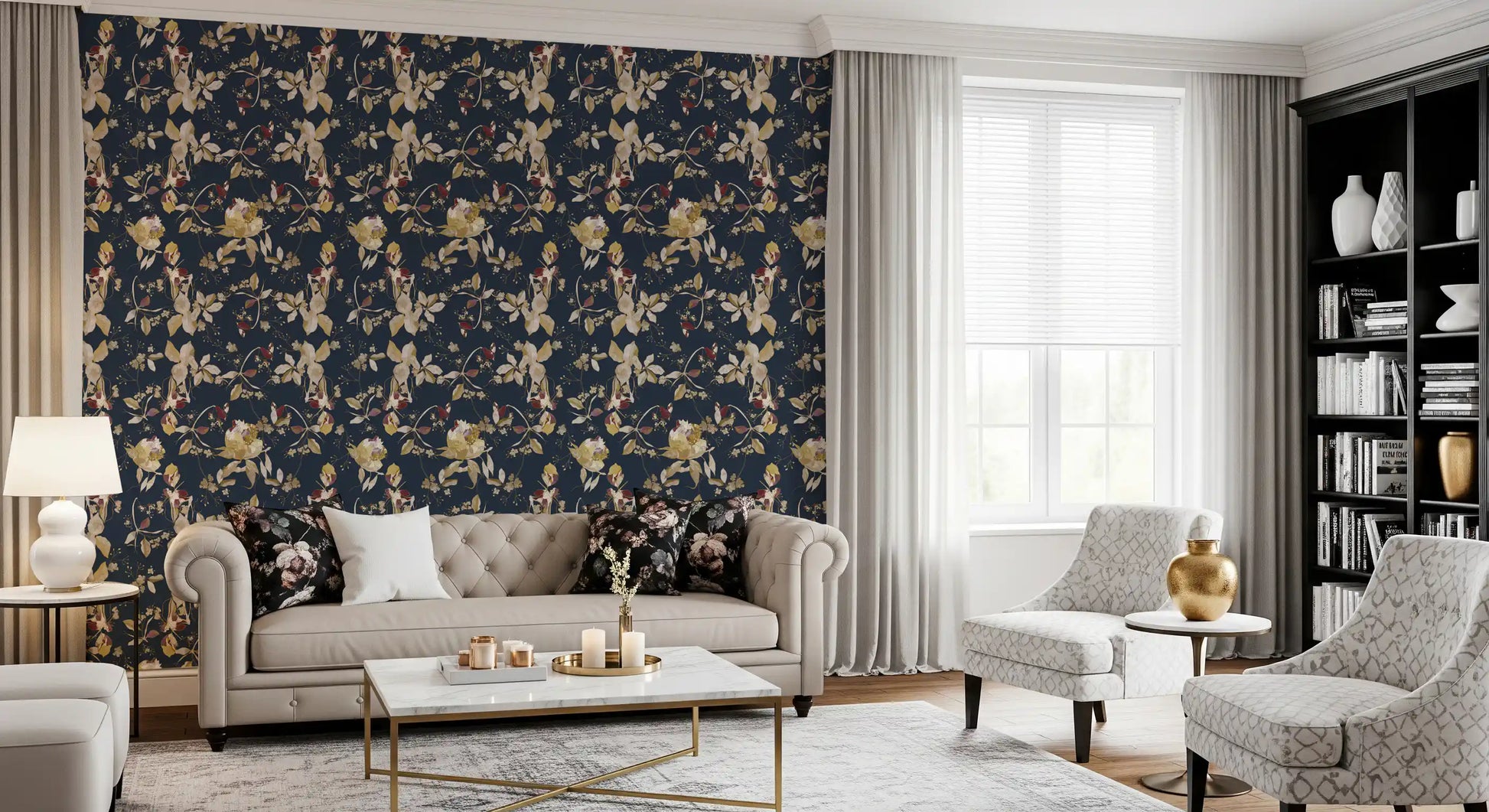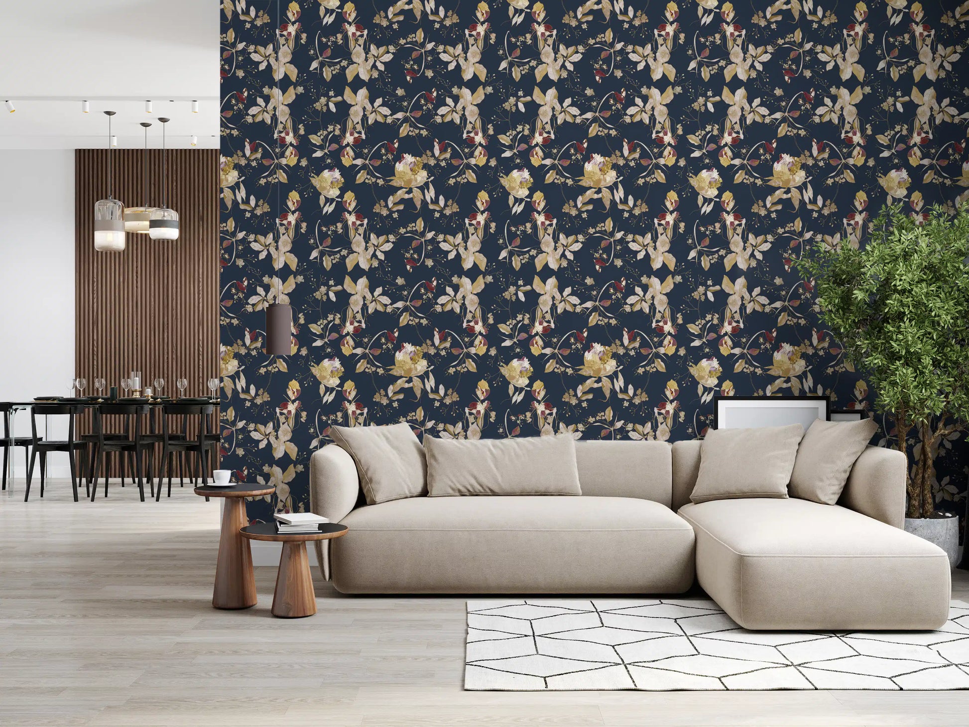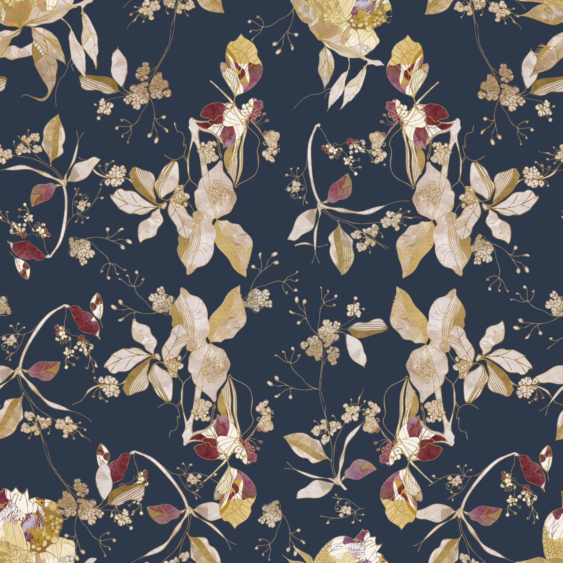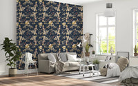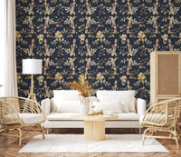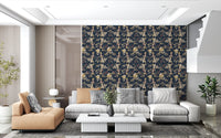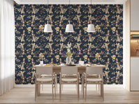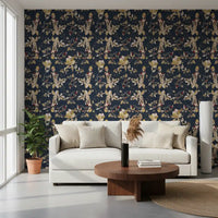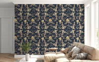 Immerse your living space in the serene elegance of our Forest Green Floral Trail wall covering. This captivating design features an intricate botanical tapestry set against a profound, deep forest green backdrop, reminiscent of twilight in a mystical woodland. Delicate golden vines and richly detailed leaves gracefully intertwine, creating a continuous, flowing trail across your walls. These exquisite elements are beautifully accented with soft, creamy blossoms and textured berries, offering a gentle contrast that enhances the overall depth. Touches of deep, luxurious maroon add an unexpected burst of warmth, evoking the hidden jewels of nature. Each detail is rendered with artistic precision, inviting a sense of sophisticated tranquility into any interior. Perfect for creating a feature wall or adorning an entire room, this design transforms your space into a luxurious sanctuary of natural beauty.