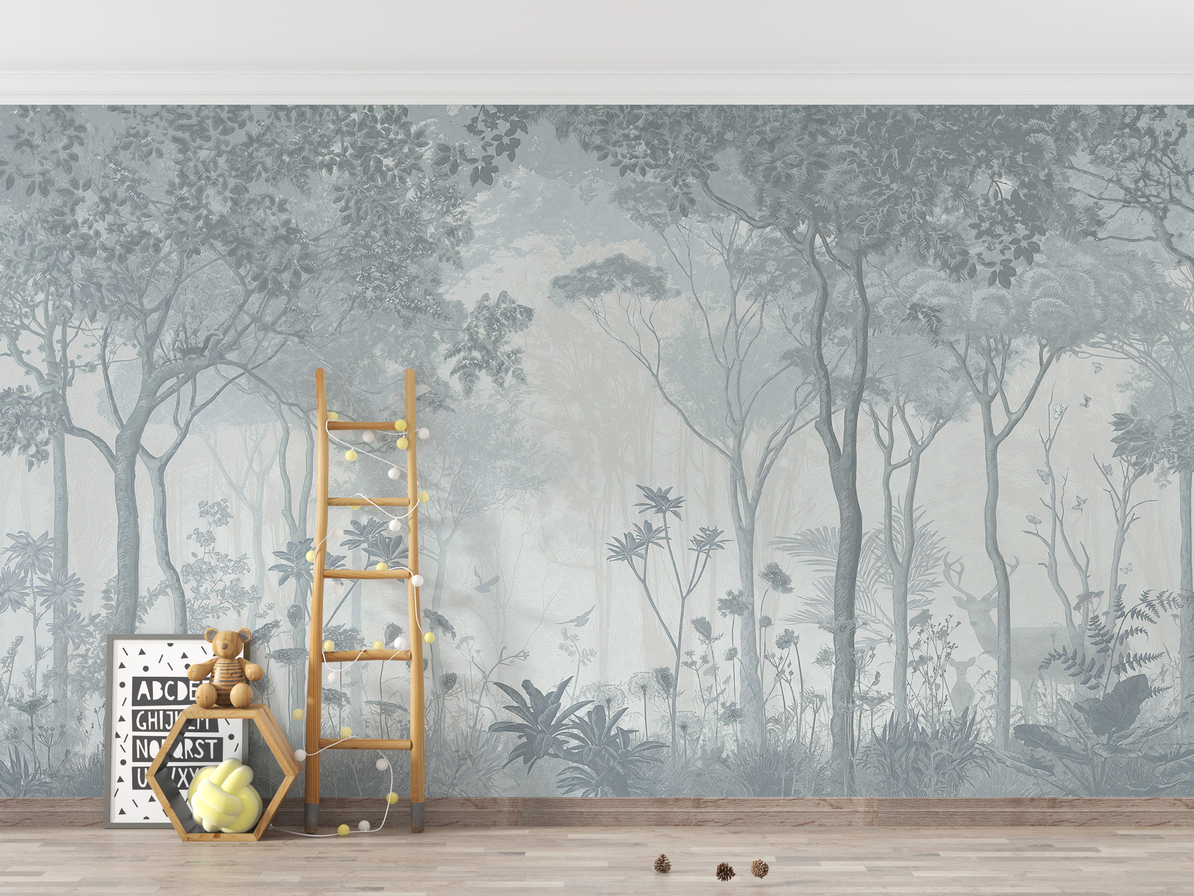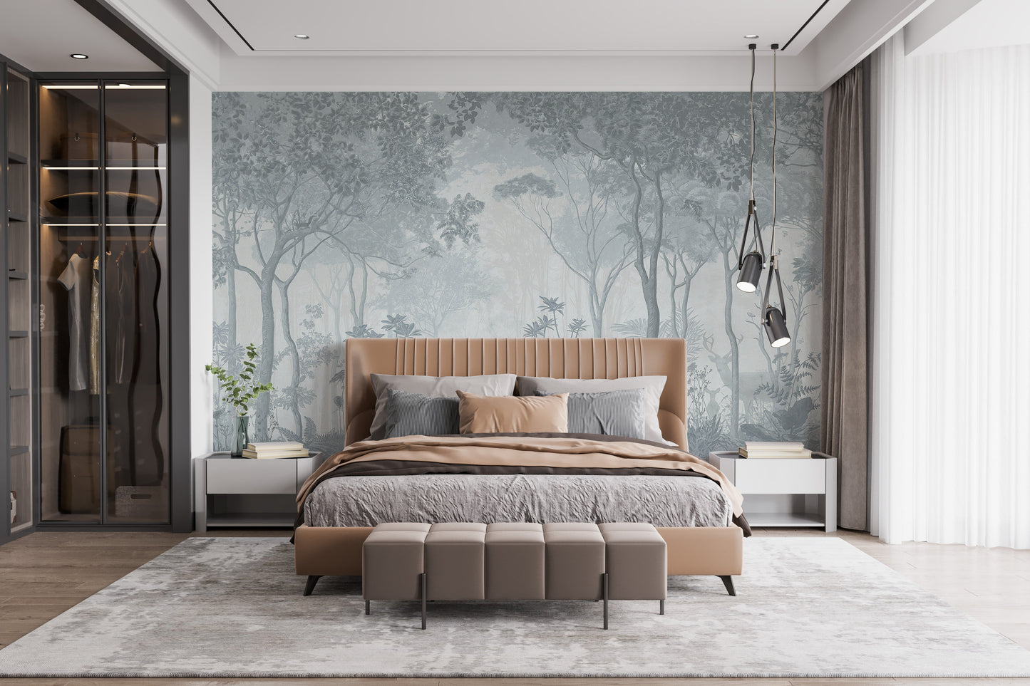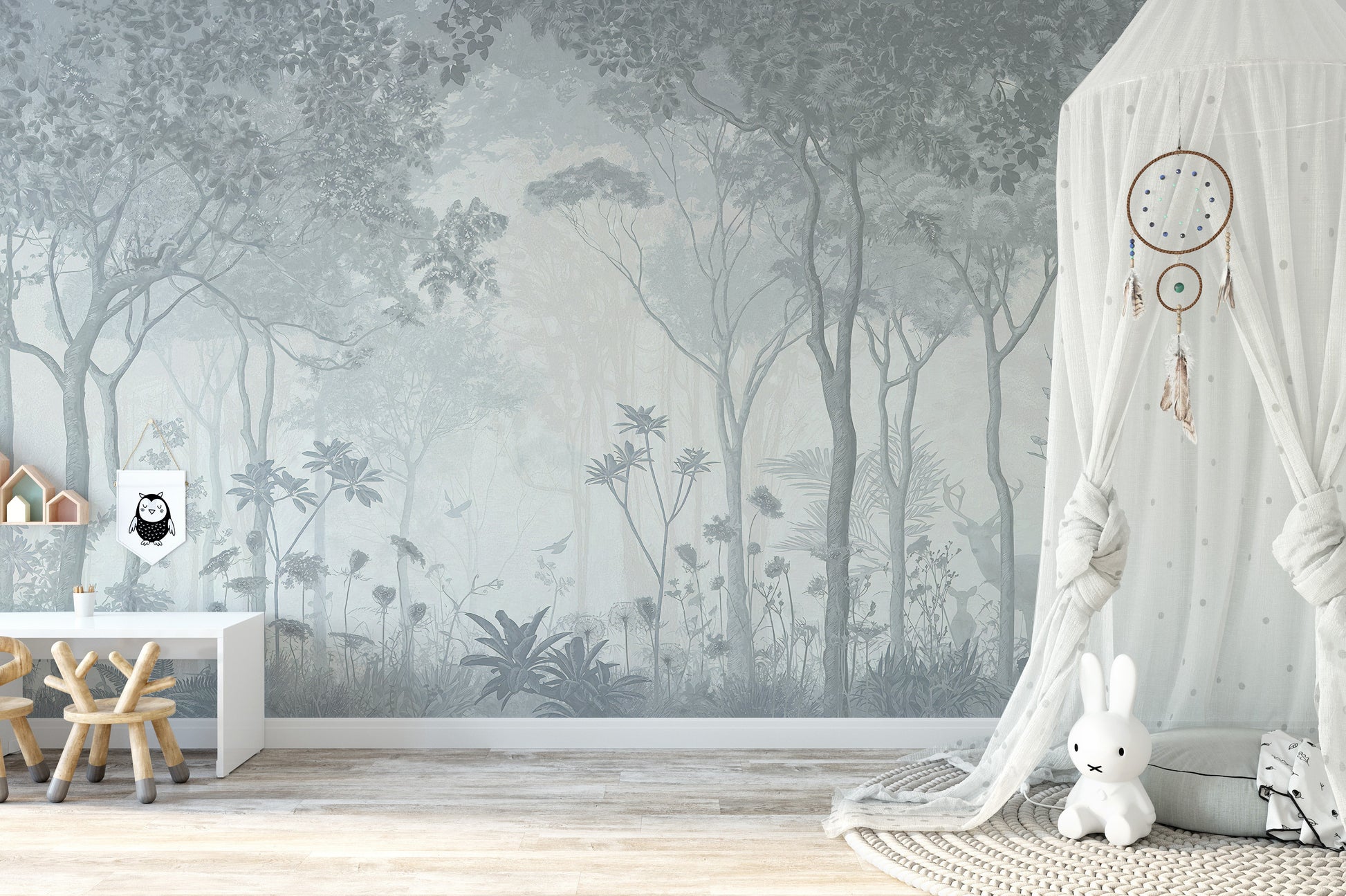 Fog-Filled Forest Scene Wallpaper Murals for Mystical Decor