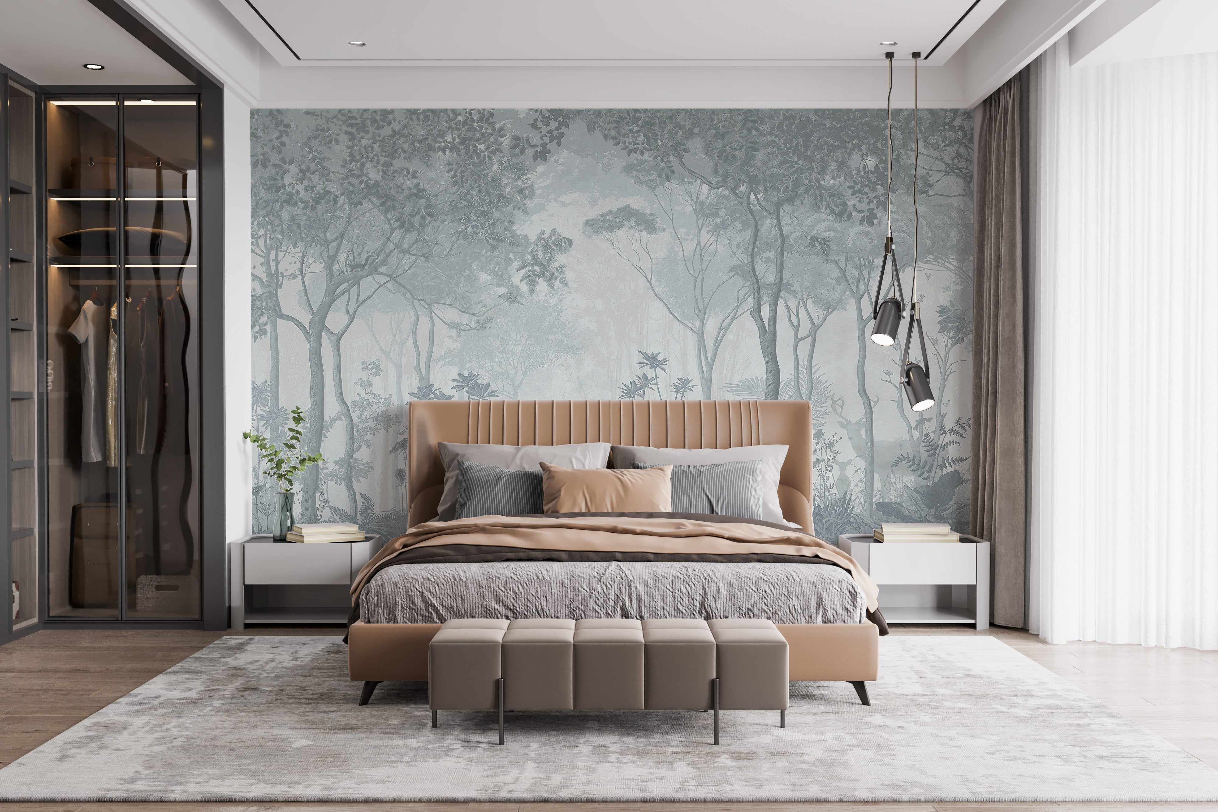 Introducing the enchanting foggy forest removable mural wallpaper, perfect for giving your living room an organic and nature-inspired feel. This is not just any living room wallpaper, as it boasts picturesque scenes of winding pathways and majestic trees in a beautiful, misty forest. The removable design makes it easy to install and take down without any damage to your walls. Imagine waking up to the tranquil atmosphere of a foggy forest every day, all without having to leave the comfort of your home. This foggy forest wallpaper is sure to bring a sense of calm and serenity to your living room, making it the perfect addition for nature lovers.