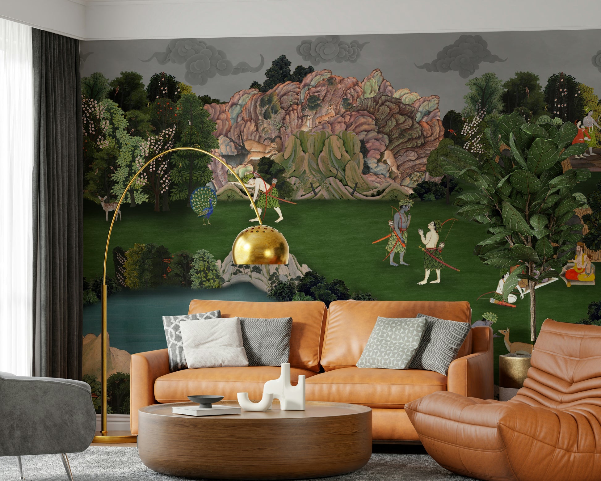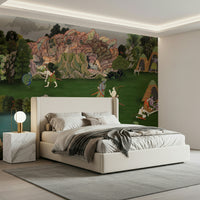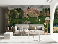 Transform your living space with this captivating wallpaper for walls. Featuring a mystical forest scene reminiscent of ancient tales, it brings an enchanting touch to any room. Verdant greens blend with earthy browns and gentle blues to create a calming, immersive environment. The detailed imagery transports you to a serene landscape, perfect for bedrooms, living rooms, or reading nooks. Invite nature's tranquility indoors and craft a space that speaks to your love of art and history. This design enriches walls with its serene story and refined colour palette.