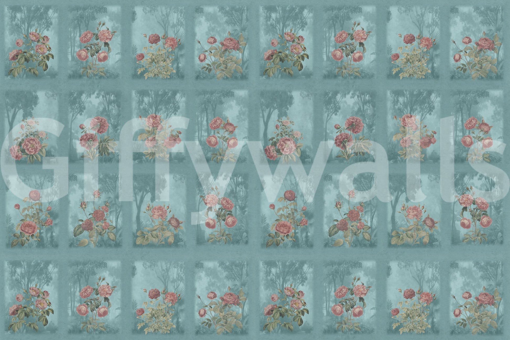 Transform your walls with this evocative wallpaper for walls featuring roses within a misty forest scene. Its soft teal palette creates a calming and serene ambiance. The pattern seamlessly repeats, giving the illusion of endless, enchanting woods. Ideal for bedrooms, living rooms, or hallways, this design adds a touch of classic elegance and invites tranquility into any space. The detailed floral arrangements and muted backdrop work well to complement both modern and traditional décor, giving your rooms a sophisticated, natural feel.