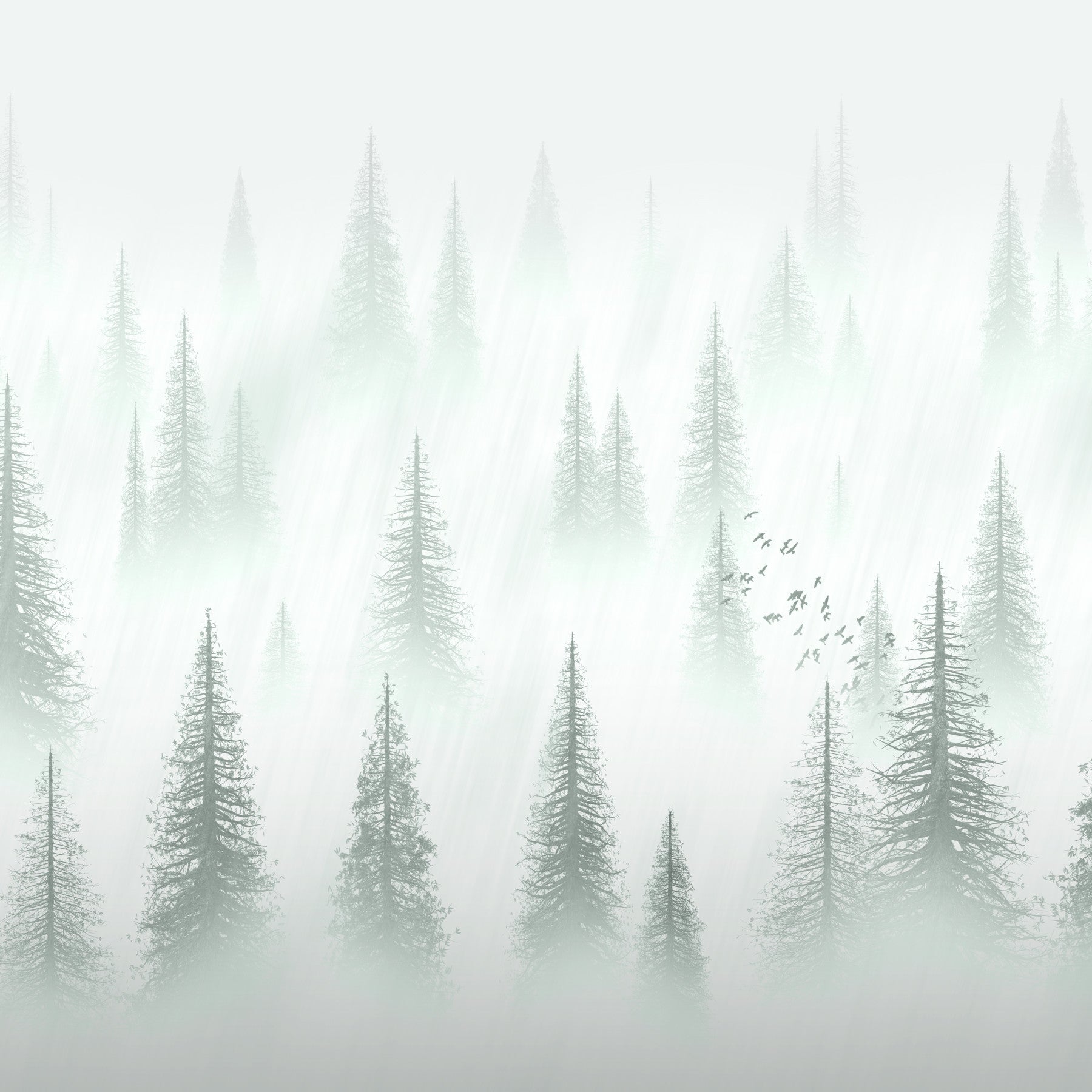 Transform your space into one that brings peace to the mind with this forest scenery illustration wallpaper. Enhanced with elegant pines and soaring birds, this peaceful design captures nature's beauty. Best for relaxing spaces such as living rooms, bedrooms, or studies, the forest serenity wallpaper merges pale greens and organic hues for a remarkably calming effect. The peaceful forest view provides the ultimate getaway from the usual daily tension, and the pine trees’ and birds’ natural features surround the scene with warm positivity. With this beautiful forest wallpaper, calming serenity is a reach away, every day.