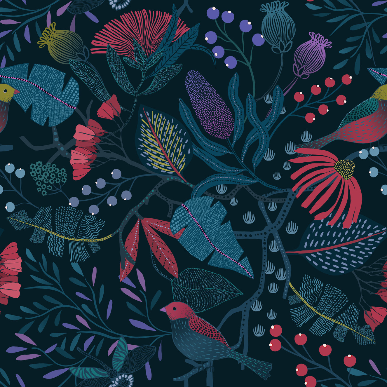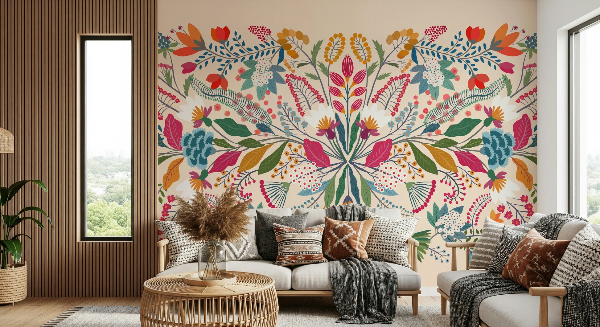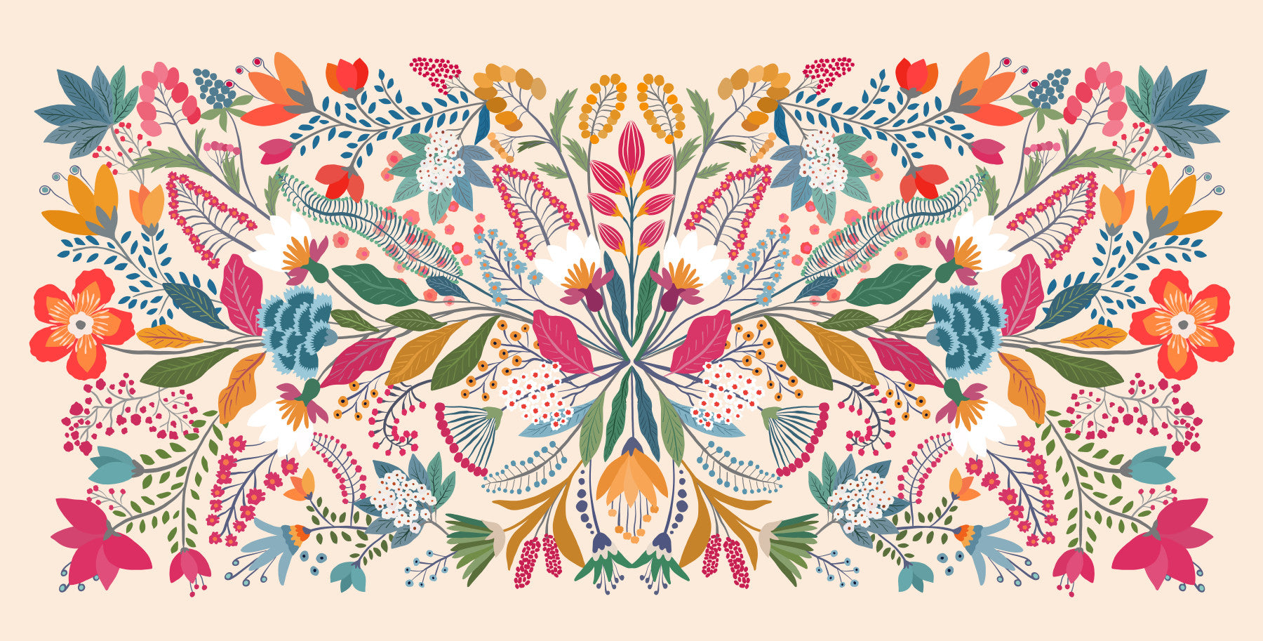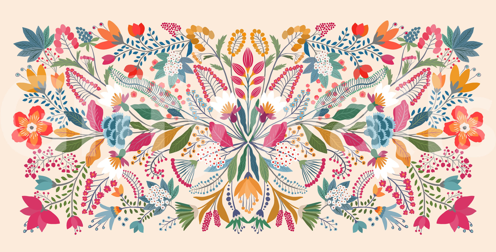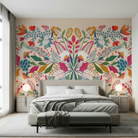Step into "Frida's Garden", a vibrant tapestry of botanical bliss designed to infuse your living space with a touch of artistic flair and natural elegance. This unique composition features an exquisite symmetrical arrangement of fantastical flora, reminiscent of Frida Kahlo's iconic artistic style. Bursting with a kaleidoscope of hues, from fiery reds and oranges to tranquil blues and greens, this wall décor creates a captivating visual experience. The stylised petals, whimsical leaves, and delicate berries intertwine in a harmonious dance, creating a sense of growth, vitality, and bohemian charm. Embrace the spirit of creativity and passion as you transform your walls into a blooming sanctuary. Let "Frida's Garden" be a statement of your artistic sensibilities, bringing a touch of the extraordinary into your everyday life. Perfect for adding a splash of colour and personality to any room, this design promises to be a conversation starter and a source of inspiration.