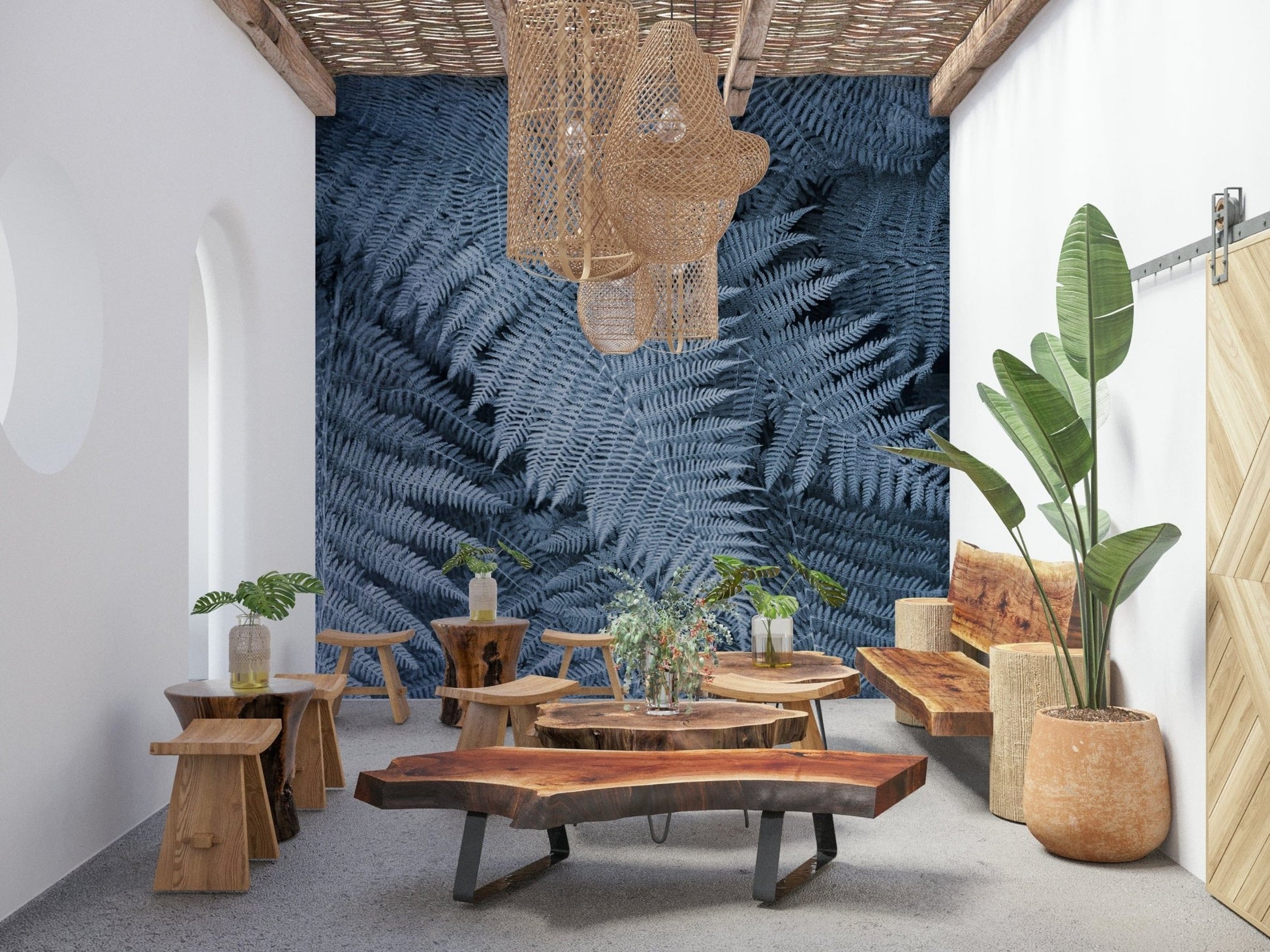 Botanical wallpaper with elegant ferns and subtle frosted textures for a serene space.
