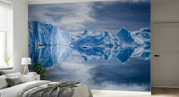 Transform your walls with the breathtaking beauty of glacial ice. The delicate shades of blue, white and grey in this wallpaper for walls offer a serene backdrop to any interior. The reflections in the calm water amplify the feeling of space, fitting for a living room or hallway. This design complements contemporary decor, creating a relaxed and tranquil atmosphere.