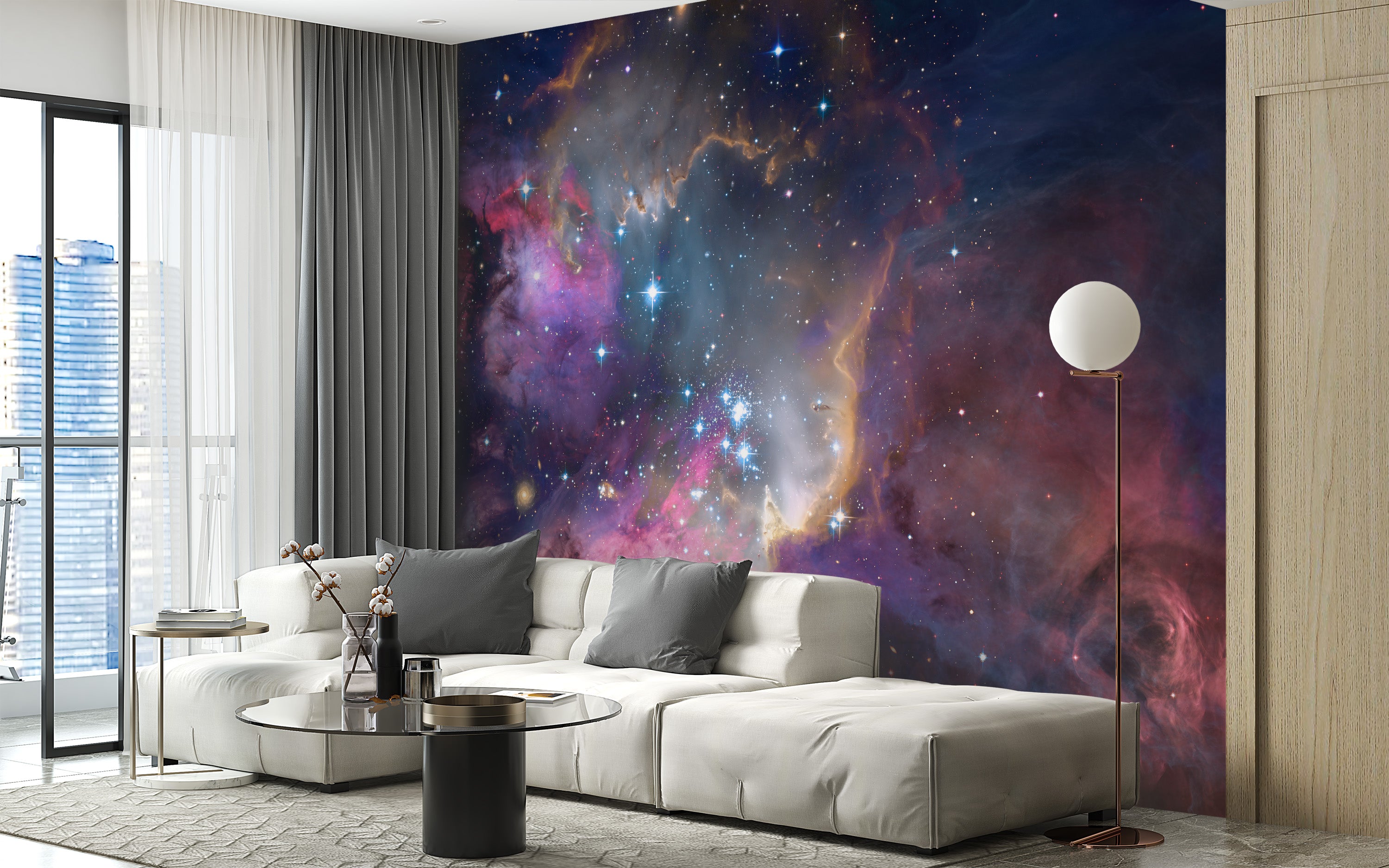Bring the cosmos to your walls with the galactic nebula space wall mural, an abstract wallpaper mural that captures the awe-inspiring beauty of the universe. This mural showcases vibrant colors and swirling galactic patterns, offering a dynamic and captivating visual. The peel and stick wallpaper design makes it incredibly easy to apply, instantly adding a cosmic wonder to any room. Perfect for astronomy enthusiasts and those who appreciate the artistry of the universe, this mural creates a stunning focal point in your home, offering a glimpse into the vastness of space with its intricate and mesmerizing design.