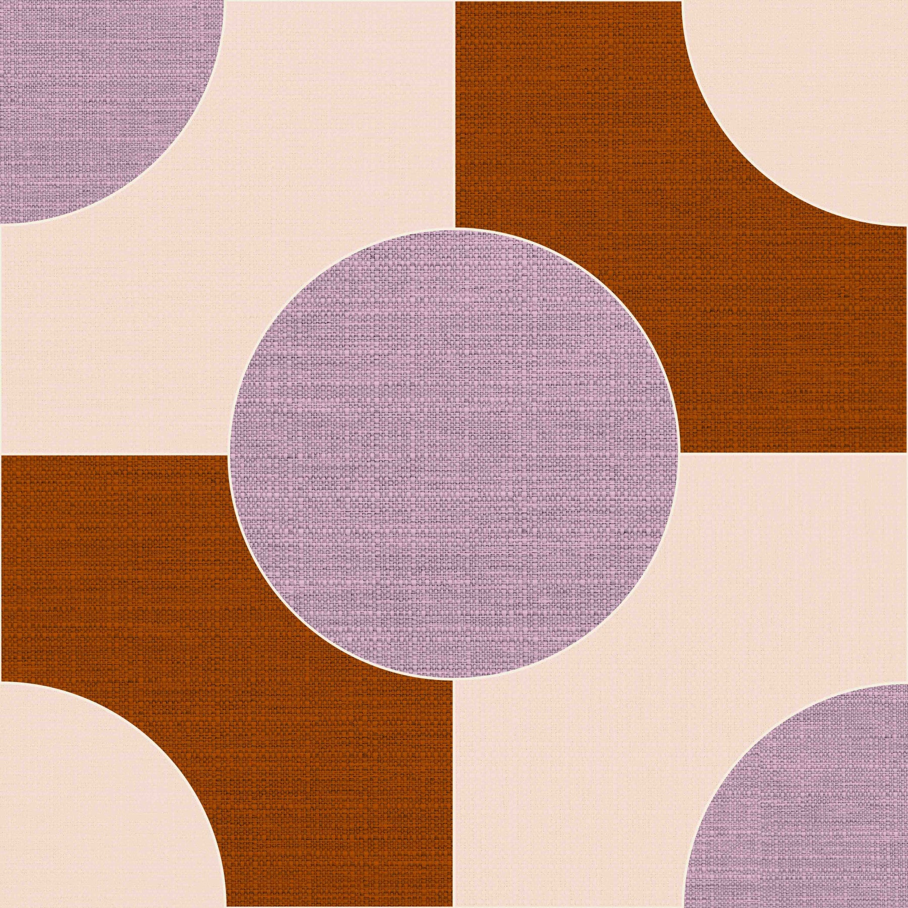 "Geometric 03" presents a harmonious blend of structured shapes and subtle textures. The design features interlocking squares in a soothing palette of light beige and earthy brown, juxtaposed with prominent lilac circles and quarter circles. The woven texture, reminiscent of natural fabrics, adds depth and warmth to the clean lines. This piece evokes a sense of understated elegance and calm sophistication. It's a perfect backdrop for a minimalist aesthetic, bringing a touch of organic softness to modern digital spaces. Its balanced composition and muted tones create a visually appealing and calming experience.