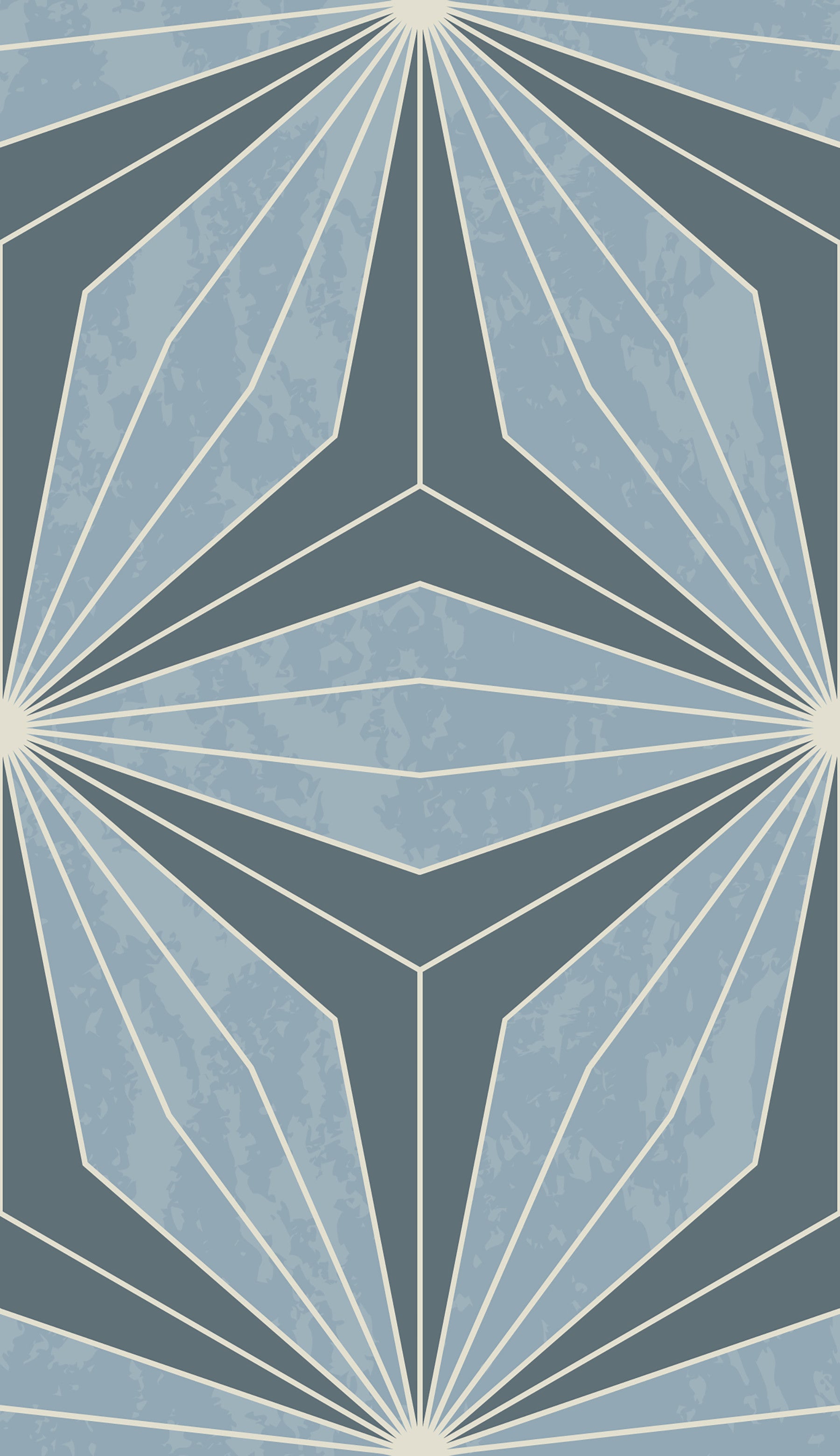 The Geometric Flowers Radiance wallpaper captures the sophisticated elegance of the Art Deco era, bringing a timeless, luxurious aesthetic to your space. This highly detailed pattern features a mesmerizing, repeating starburst or fan motif, expertly rendered in muted slate and pale blues with crisp, light accent lines. Ideal for creating a captivating accent wall or covering an entire room, this design is more than simple wallpaper for walls—it's a striking piece of decorative art. Apply this exquisite mural wallpaper in living rooms, bedrooms, or hallways to instantly elevate the environment with its subtle texture and architectural structure.
