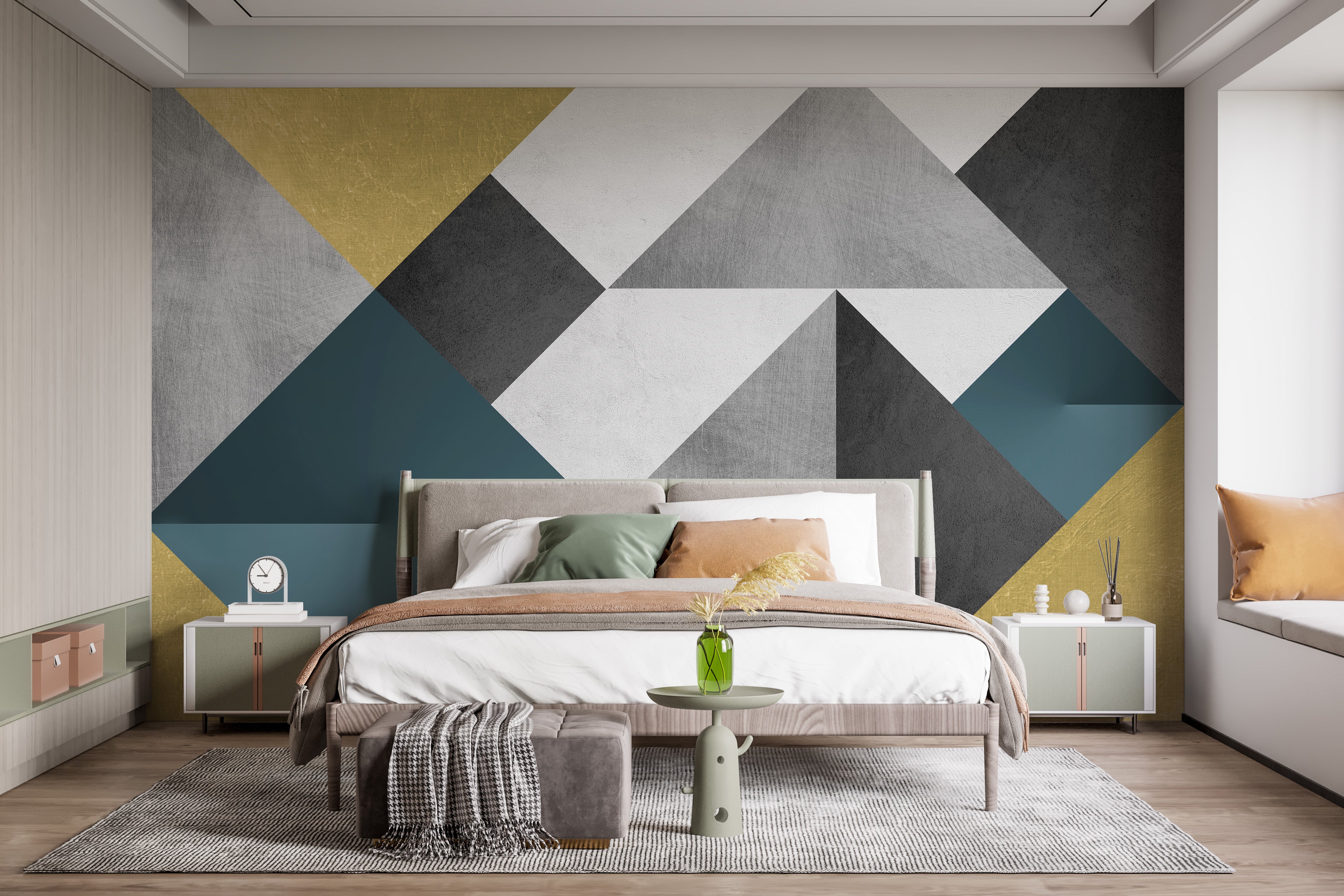 This blue-yellow abstract wallpaper stands out as a unique feature in your space, ensuring your walls tell a story of contemporary flair and artistic vision. Secure this abstract wallpaper today and adorn your domain with a design that speaks volumes of your taste for the avant-garde. With our Blue & Yellow Abstract Geometric Multicolour Triangle Wallpaper Mural, make every glance at your walls an experience of artistic indulgence.
