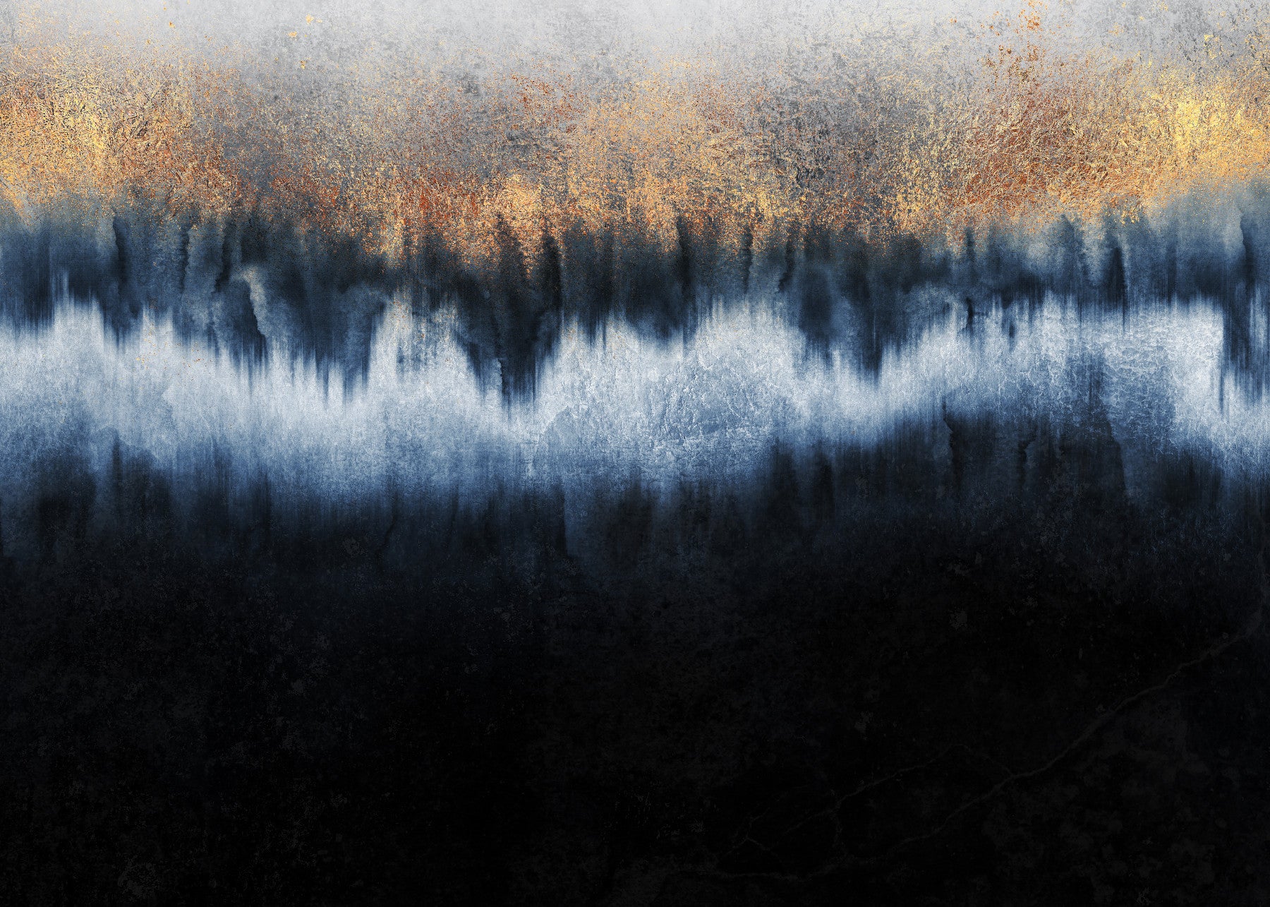 Dive into the elegance of 'Gilded Depths'. The design showcases a captivating blend of rich blues and shimmering gold, creating a striking visual contrast. This wallpaper for walls features an abstract style, offering a modern and luxurious feel. It suits a living room, bedroom, or dining room, adding depth and sophistication. The ombré effect and textured finish make it a versatile option that complements various interior aesthetics, from modern to industrial.