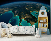 Transform your living space with this captivating satellite view of Earth at night. The radiant glow of city lights creates a striking contrast against the deep blue oceans, bringing a sense of wonder and discovery to your walls. This design works wonders in a home office, study, or even a teen's bedroom, sparking curiosity and conversation. The unique perspective lends itself to a sophisticated, modern style, while the neutral tones ensure seamless integration with existing decor. Install this wallpaper for walls to add a touch of global awareness and a sophisticated edge to any room. The image creates the impression of a brightly lit painting. This image will transform the atmosphere of your home.