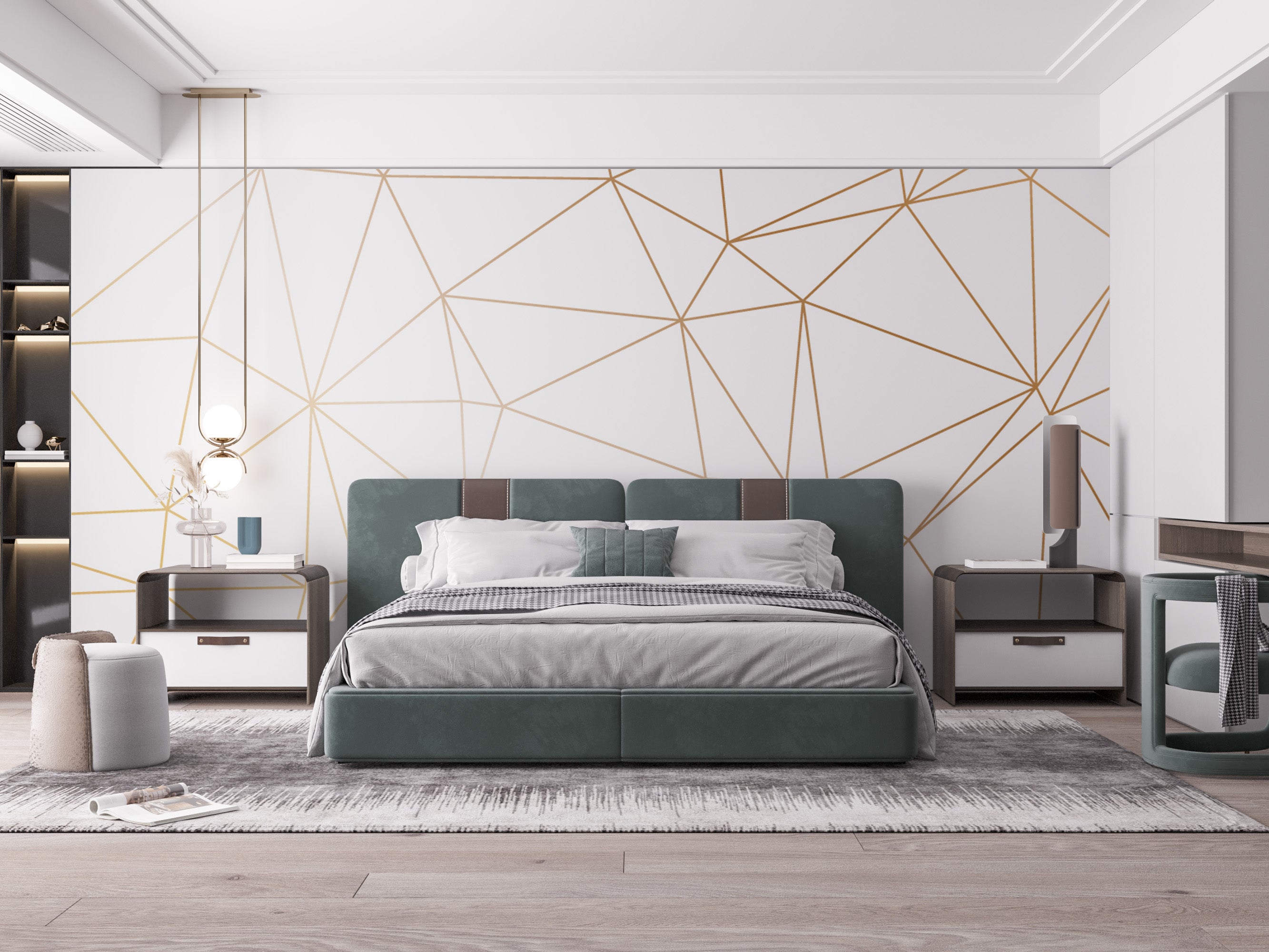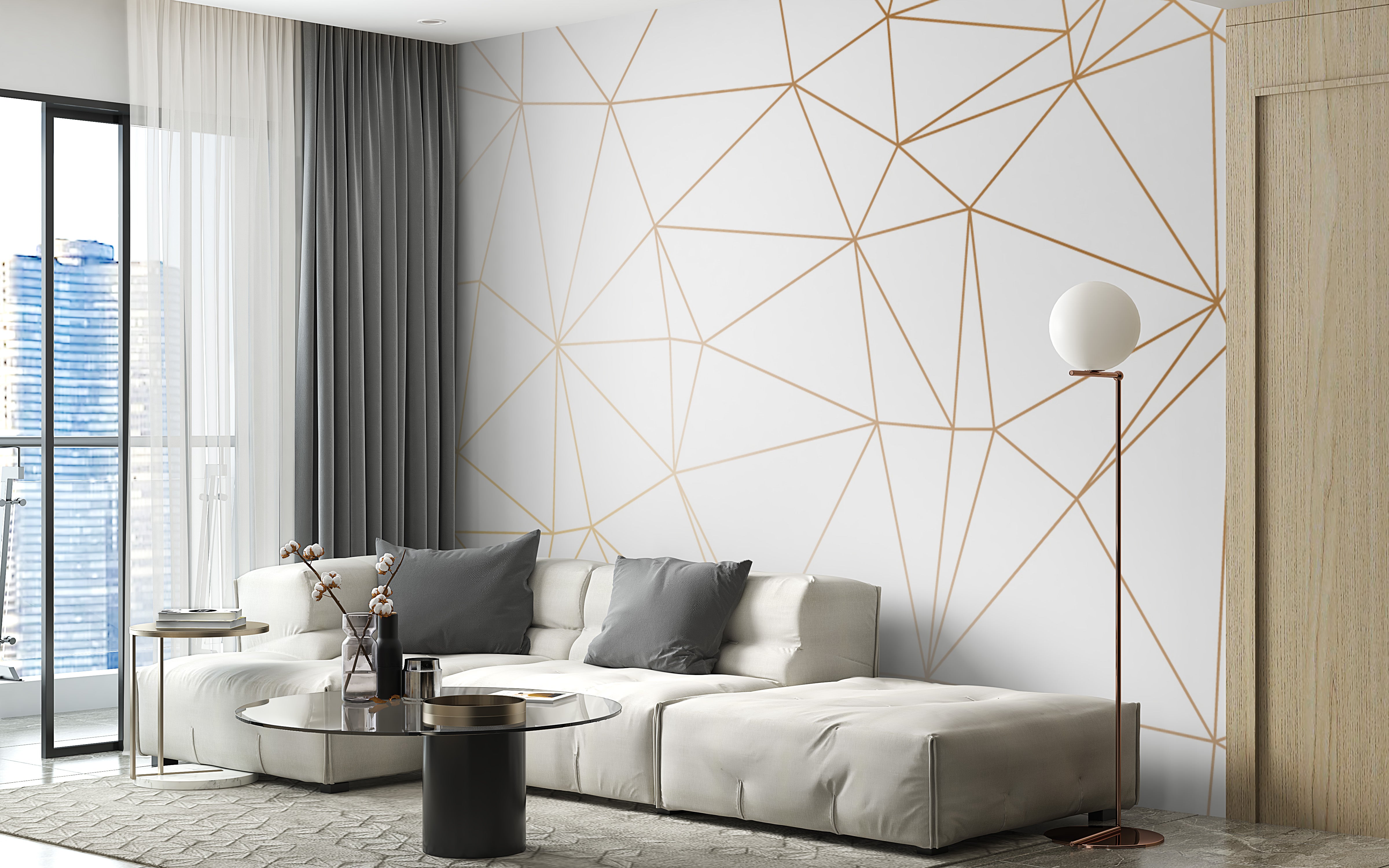 Elevate your space with the gold polygonal strip geometric wallpaper mural. This striking design features a unique blend of sharp geometric shapes and a luxurious gold color palette, bringing a modern and sophisticated touch to any room. The wallpaper's polygonal strips create a dynamic and visually captivating pattern, perfect for adding depth and interest to your walls.