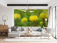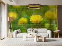 Beautiful Yellow coloured Anemone flowers in garden. Infuse your home with the charm of a bygone era using this vintage-inspired floral wallpaper. Featuring elegant old-world script overlaid with a soft, sunny flower, it exudes a timeless appeal. The design in shades of green and yellow provides a warm and soothing atmosphere perfect for a bedroom or living room. Transform any room into a peaceful sanctuary with this refined print. Using this wallpaper for walls is an easy way to add character and depth. It offers a versatile backdrop that seamlessly combines with vintage, contemporary, or rustic style decor.