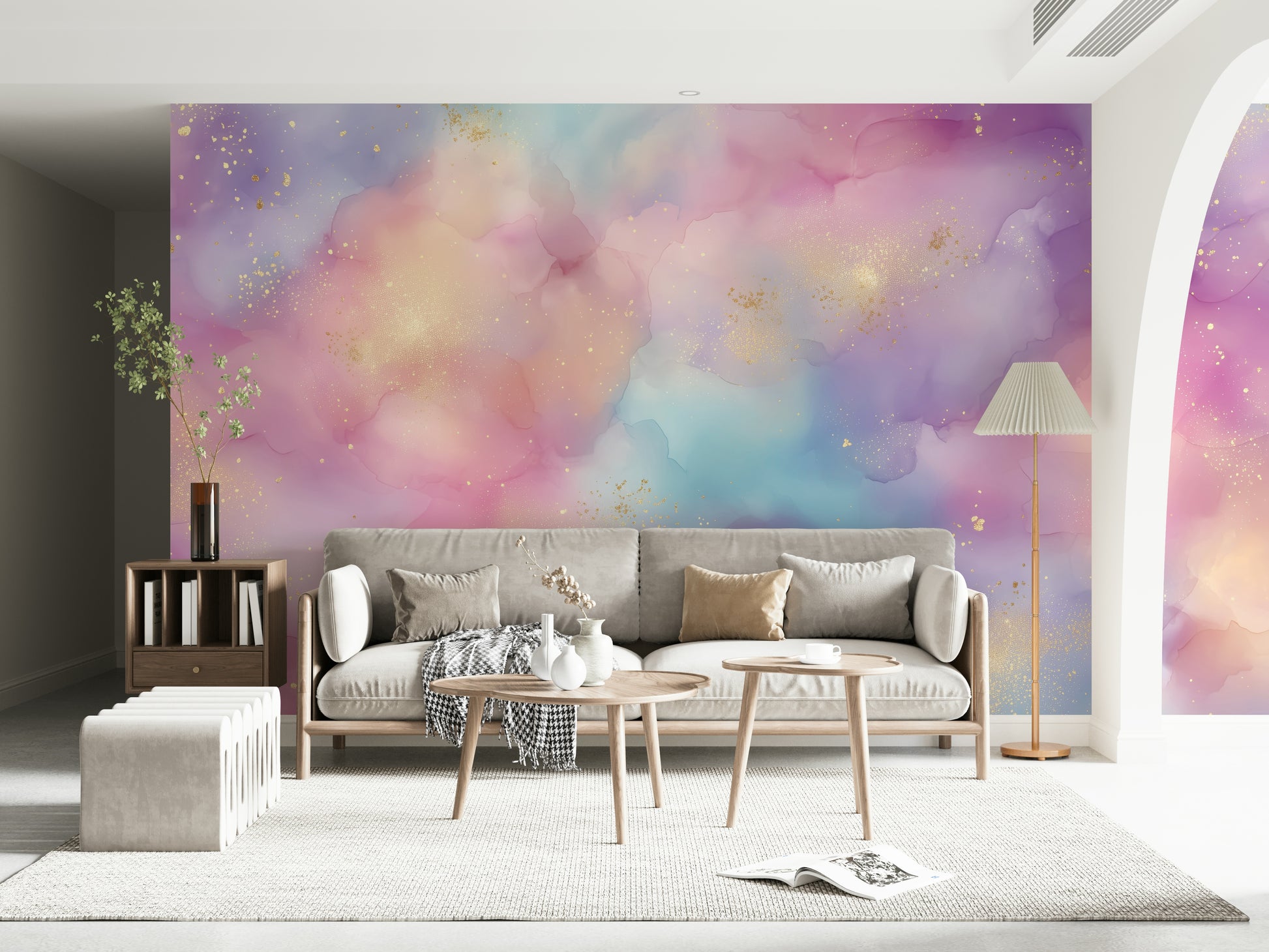 Immerse yourself in the ethereal beauty of "Golden Dust Fantasy," a mesmerising wallpaper that evokes a sense of wonder and tranquility. Soft water colour hues of lavender, rose, and serene blue blend seamlessly, creating a dreamlike backdrop that's both calming and captivating. Shimmering golden particles delicately dance across the canvas, like stardust scattered upon a celestial sky. These golden accents add a touch of luxury and magic, transforming your screen into a portal to a fantastical realm. Perfect for those seeking a touch of elegance and whimsy, this wallpaper brings a soft, inviting glow to any digital space. Let "Golden Dust Fantasy" transport you to a world where dreams take flight and imagination knows no bounds. Elevate your digital experience with this enchanting blend of colour, texture, and golden shimmer.